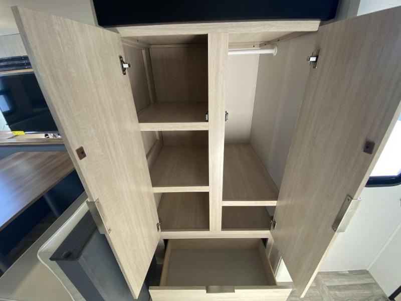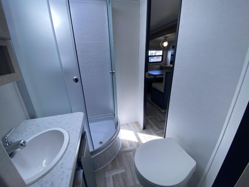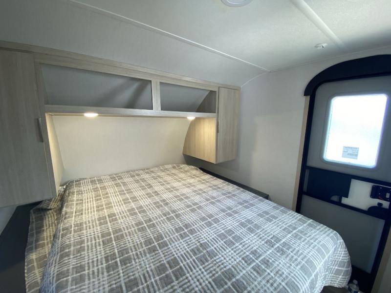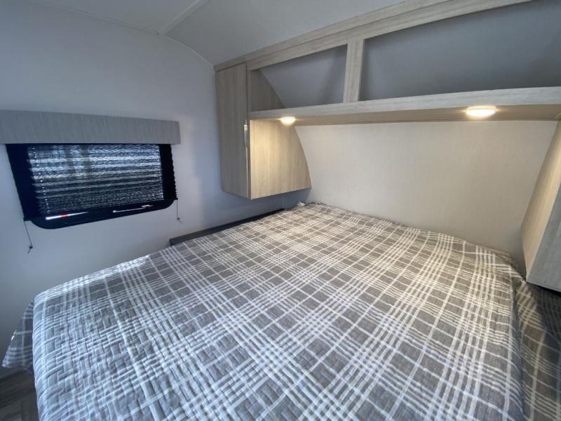 The cook in the family will love this trailer with its rear kitchen which includes all the appliances and an undermount stainless steel sink, plus windows for views. The slide out in the main living area provides more elbow room and includes a booth dinette with under bench storage, a pantry for dry goods and a wardrobe for your guests. The full bathroom offers a radius shower and vanity, and the front bedroom gives you privacy, a queen bed with wardrobes, and the second entry/exit door for convenience.