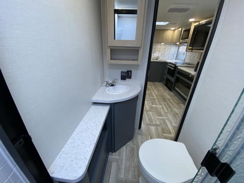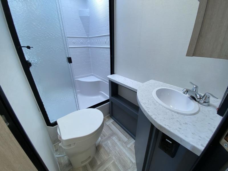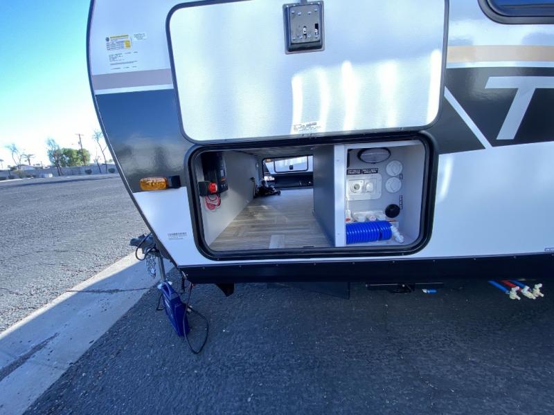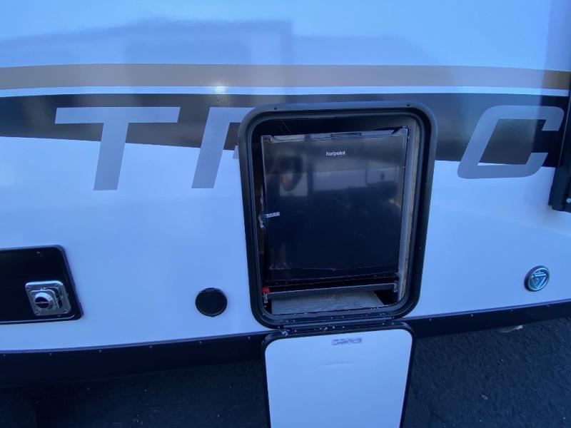 With any Tracer travel trailer by Prime Time RV, you will enjoy a lightweight, easy to tow RV for all your outdoor adventures. Each one is constructed with Eternabond construction that includes laminated aluminum framed walls, floor, and roof for ultra durability. You will be able to extend your camping season thanks to the fully enclosed underbelly, the 30K BTU furnace, and the 15,000 BTU A/C. The Tracer travel trailers are packed with exterior conveniences to make each trip hassle-free, like the power tongue jack and electric stabilizer jacks, the Doggy D-ring pet securement, the universal docking center, and so much more. Head inside to find at-home comforts throughout, including solid wood core cabinetry, LED lighting with motion sensor lights in key locations, and a brushed nickel "J" spout kitchen faucet to name a few.