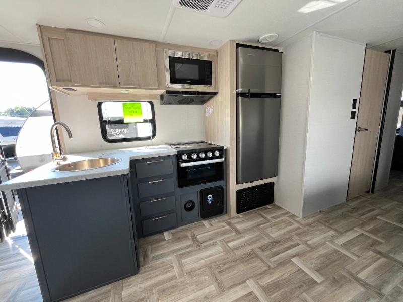 Each Tracer LE travel trailer by Prime Time is made to last with its Eternabond construction, and there is a power awning with LED lights for an inviting outdoor living space. There is a manual tongue jack and manual stabilizer jacks outside, along with an XL grab handle and steel entry steps to provide a sturdy entrance and exit into your trailer. You will fall in love with the interior that includes LED lighting, a stainless steel galley sink, a 15k BTU A/C, and a soundbar to listen to your favorite tunes. You will also love the Tracer LE Solar Package that comes with a 200W solar panel, a 40A MPPT charge controller, and a solar disconnect switch for off-grid capabilities!