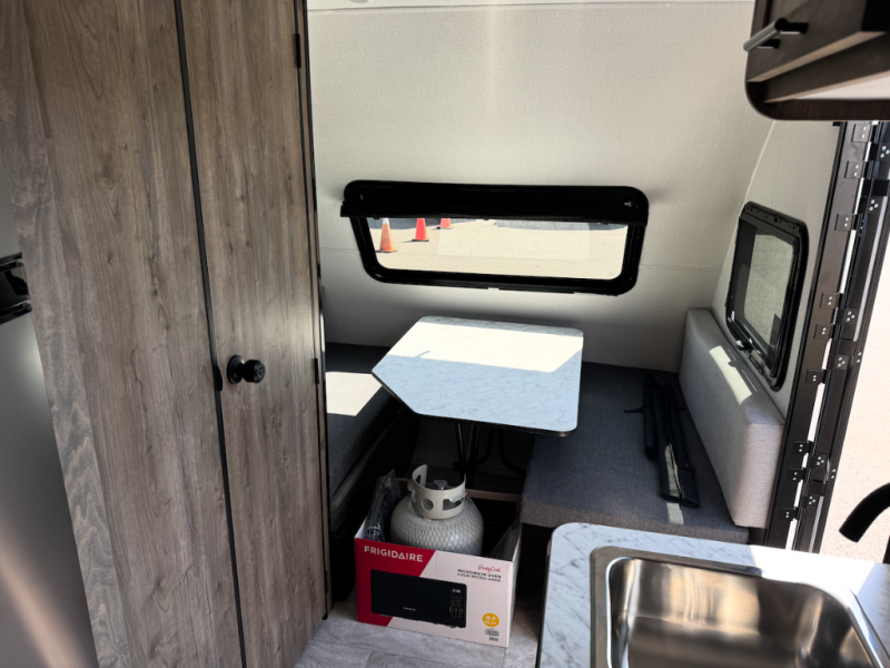 You get to skip the public facilities when you travel with this Evasion. As you enter there is a a shower and cassette toilet giving you privacy to get cleaned up. You can make a meal using the stove or microwave, and dine at the dinette that becomes a 76" x 52" bed at night. You will also find sleeping space on the sofa bed in the rear with a fold down bunk above, allowing five people to stay the night. Other features that allow you to stay in comfort include a fridge, a 20,000 BTU heater, a water heater, and a front window for beautiful views and privacy when you close the curtain. Be sure to take a look at the options, such as adding an air conditioner, an exterior shower, and a radio.