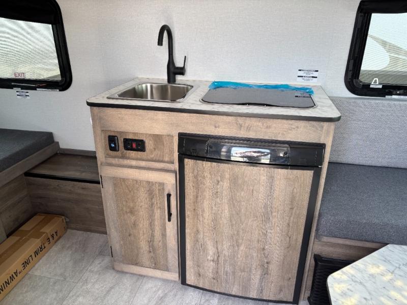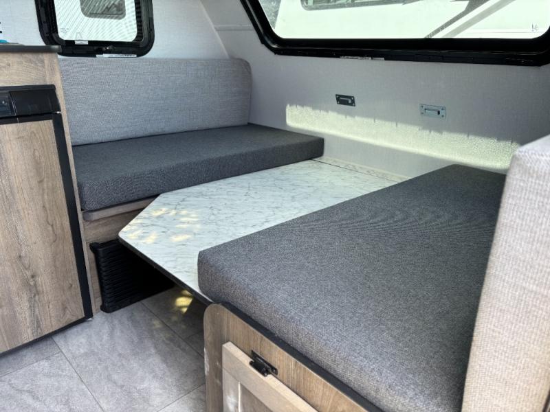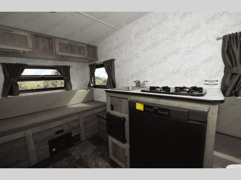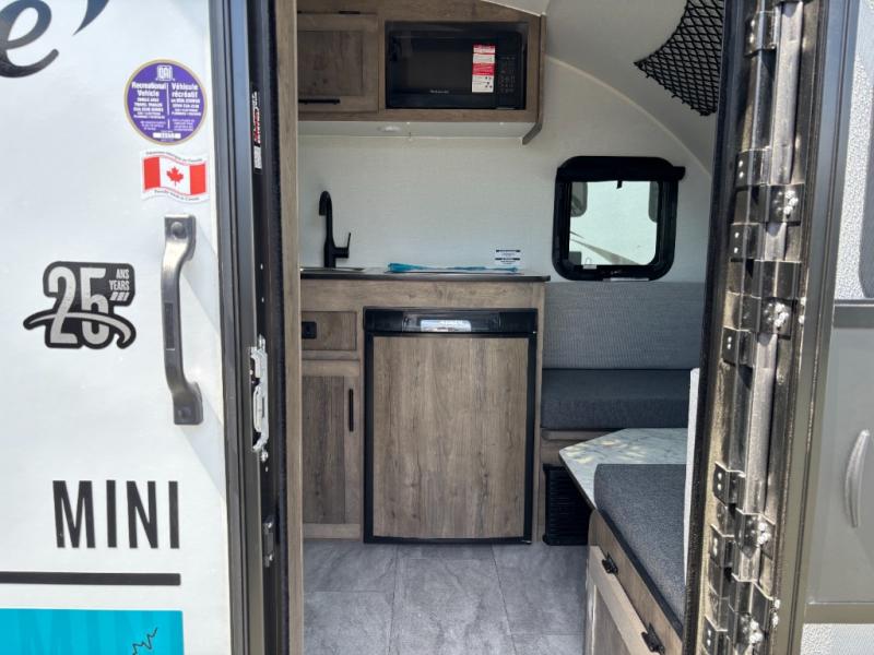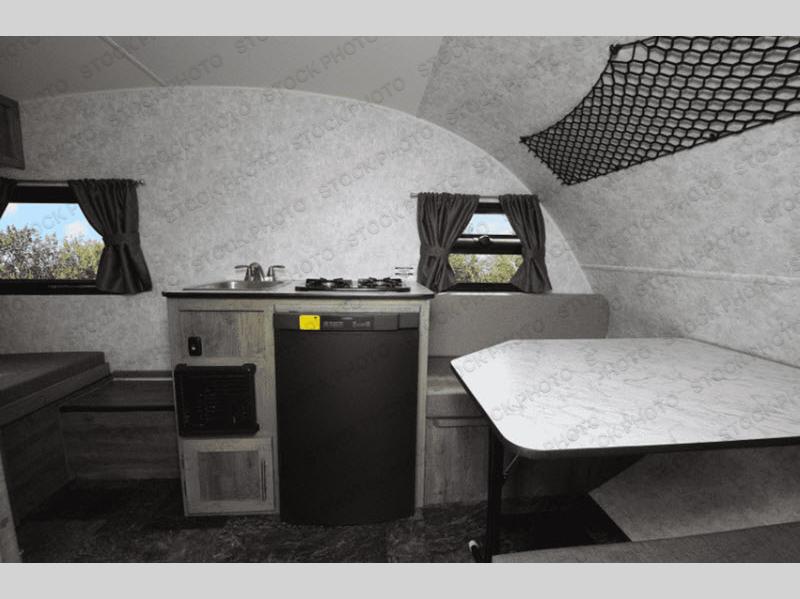 Hitch up your compact car to easily tow this popular model, the Mini. This camping caravan can easily accommodate four people with the sofa that converts into a 74" x 54" bed and the dinette offering a 74" x 48" sleeping space. You will also have the comfort of 16,000 BTU heating, a 3.7/4.2 cu. ft. refrigerator, and a stove. Outside you will find a 120 volts outlet and a storage door for a few more items. You may decide to add a option or two such as an air conditioner, an exterior shower, and a radio.