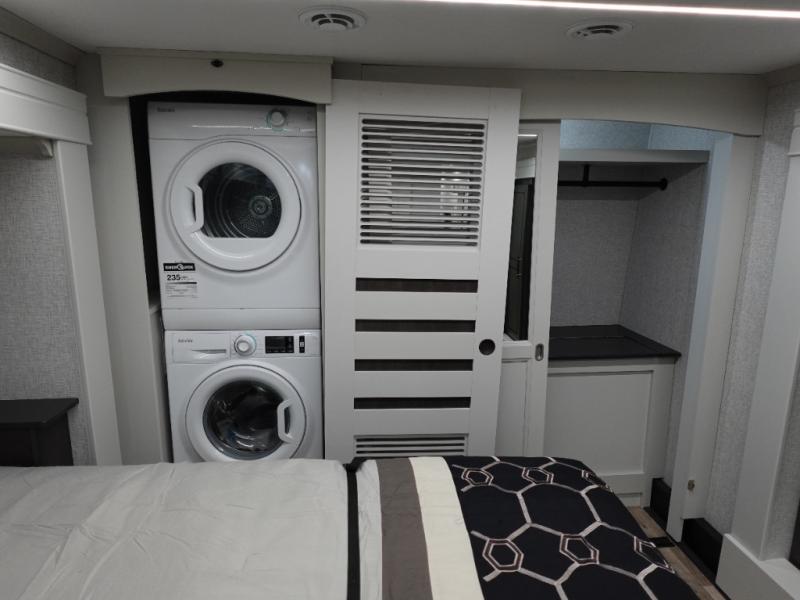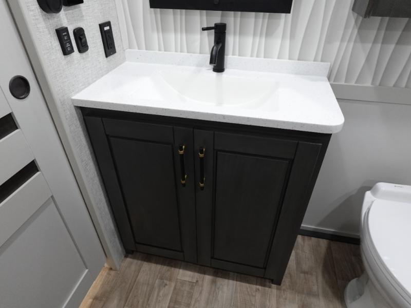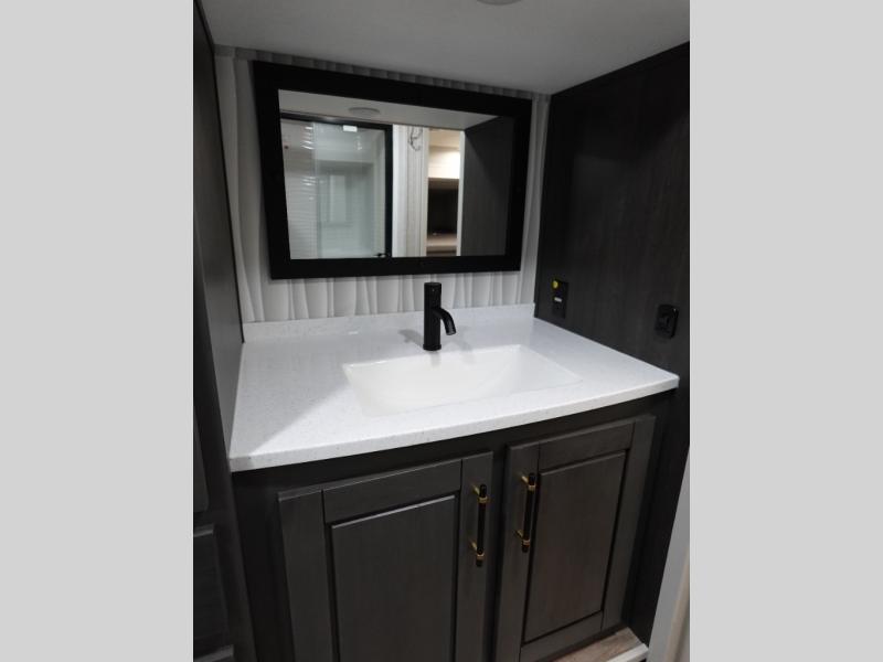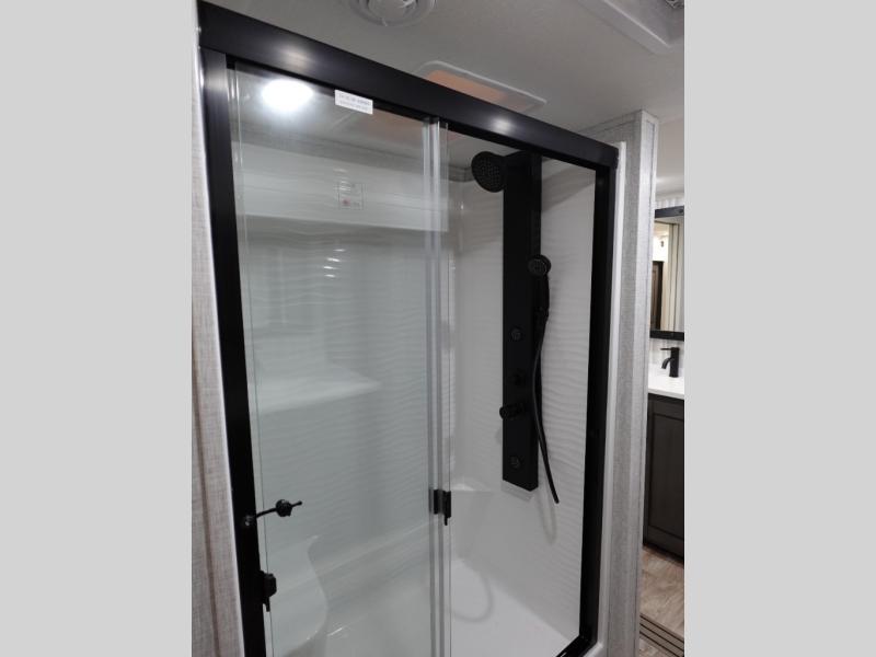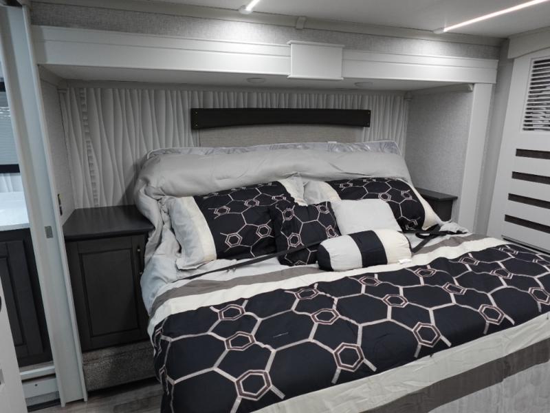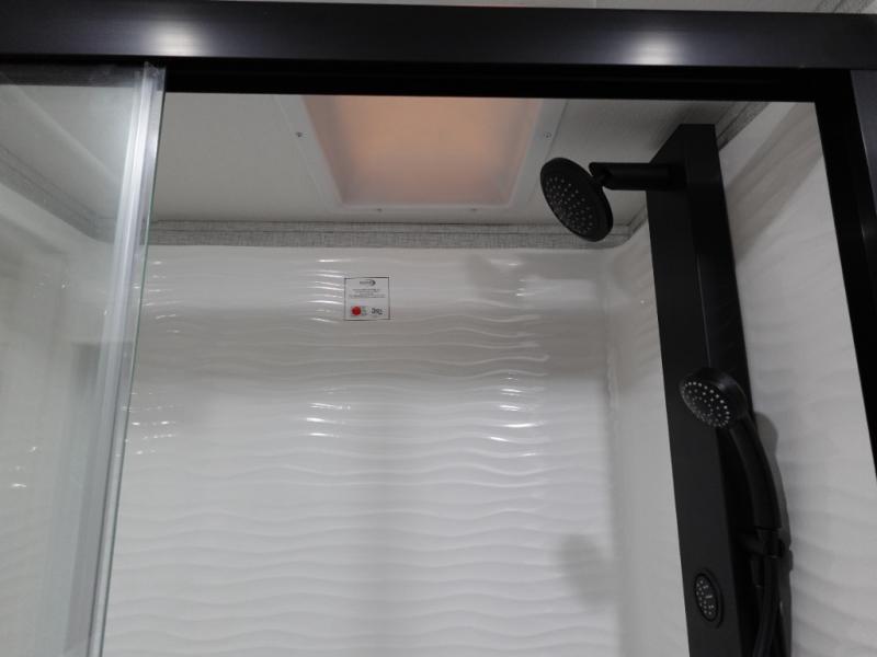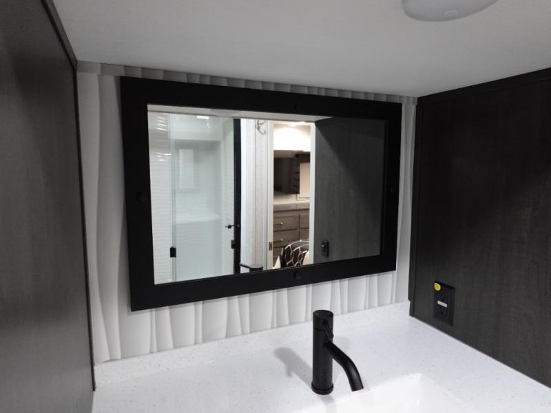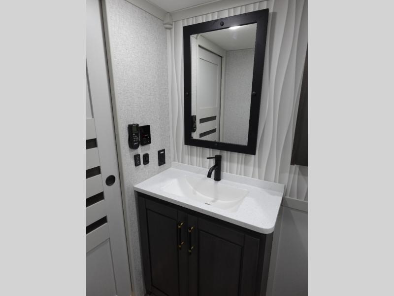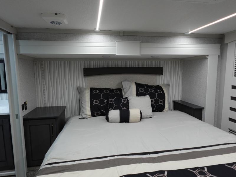 Live large in this Redwood RV quad slide fifth wheel featuring a combined kitchen and living area with dual opposing slides for maximum space in this area alone. There is plenty of seating with an 80" tri-fold sofa along the rear wall, and 68" theater seats plus a dining table with two chairs within the curbside slide. You can easily entertain guests in this space and the center island with sink, and the dishwasher prep gives you the option to make cleaning easier. You will love the entertainment center with 65" TV opposite the theater seats for movie night, and when it's time to turn in, a spacious master bedroom with dual opposing slides as well. This space offer a king bed, ample storage, and a dual entry bath with 48" shower including a seat with a slide out linen cabinet and vanity sink which is all part of the bed slide.
