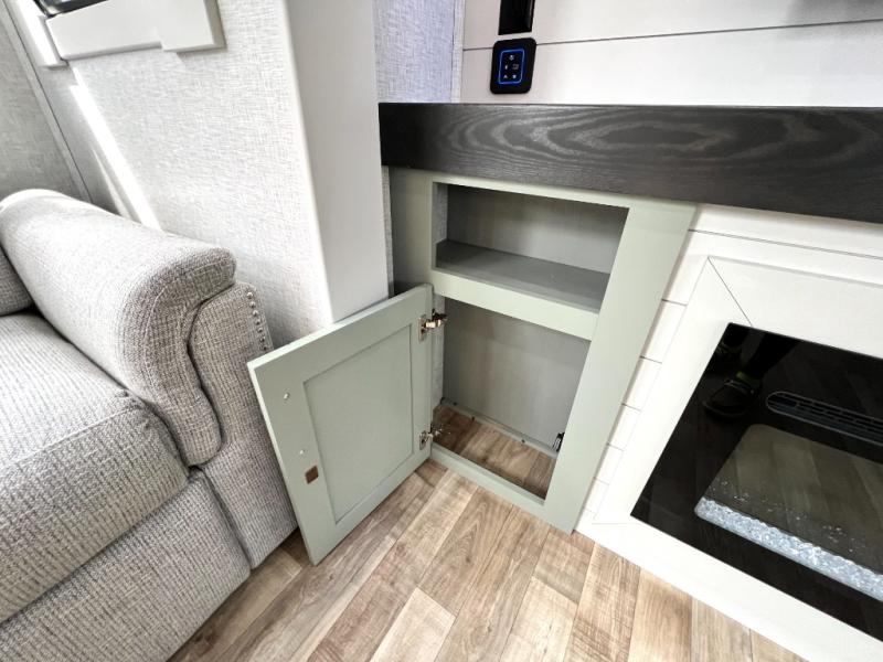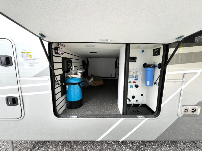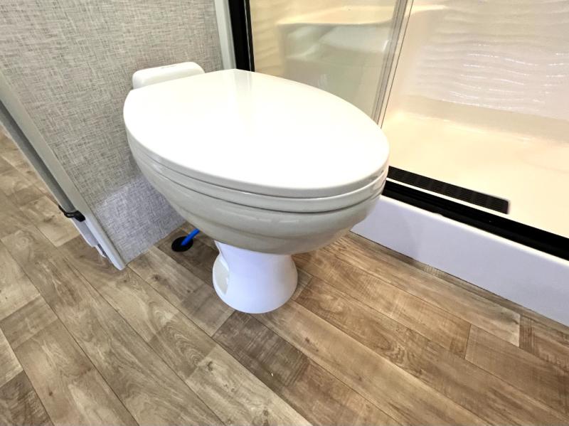 You are going to wish you found the Redwood fifth wheels sooner! With all of the residential comfort and modern luxury, you will be impressed. The Williamsburg Furniture Collection includes two premium dinette chairs, a buffet-style adjustable dinette with leaf extension, a residential-style sofa, and powered theater seating. The luxury further extends to the bedroom where you will find a gel-foam king bed with tilt and C-PAP shelves on both sides of the bed. The straight roof line gives a luxury profile, and there are preparations for a wireless backup camera as well as solar power. The seamless residential insulated heat ducts will efficiently heat your unit, and there is an exterior radio in the fully finished and heated pass-through with slat board storage.