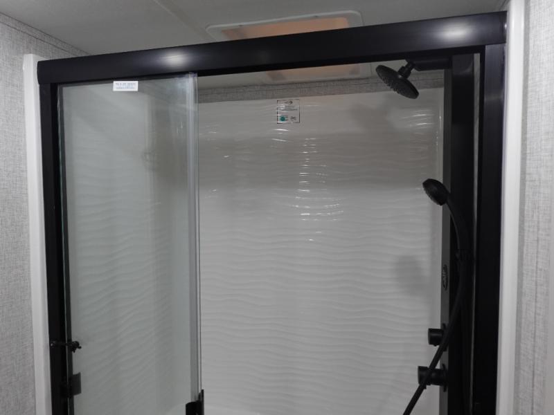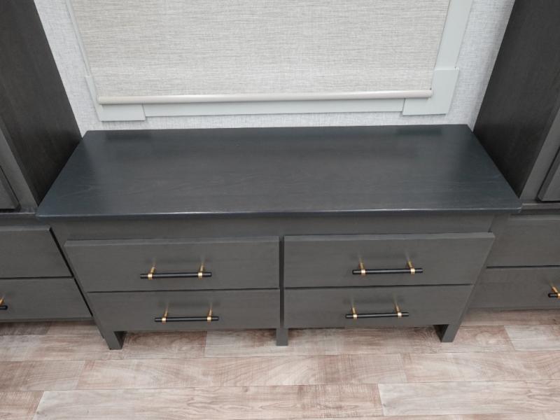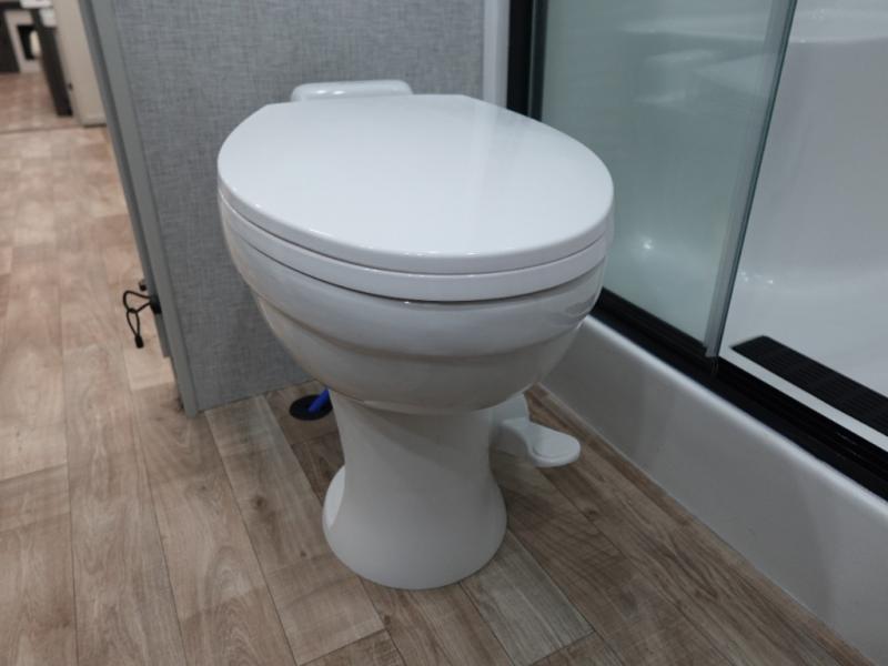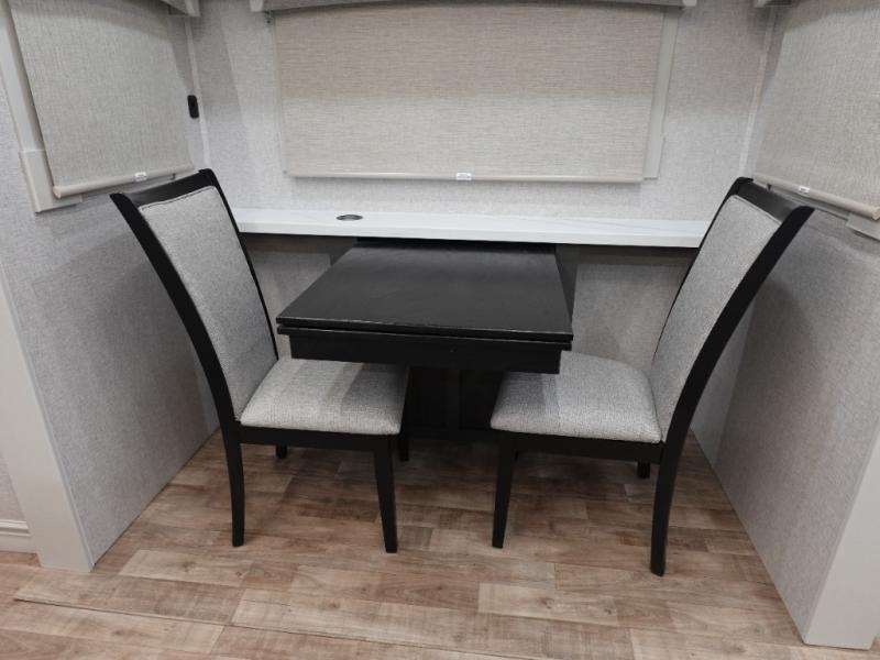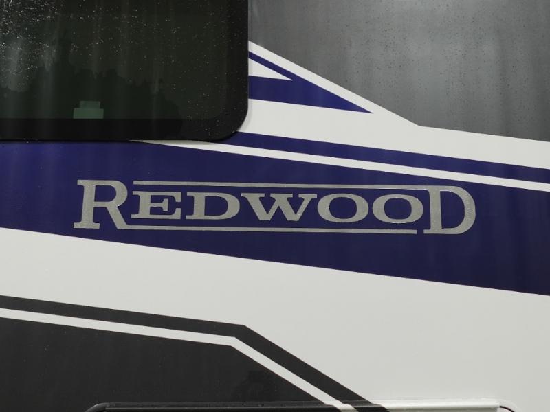 You are going to wish you found the Redwood fifth wheels sooner! With all of the residential comfort and modern luxury, you will be impressed. The Williamsburg Furniture Collection includes two premium dinette chairs, a buffet-style adjustable dinette with leaf extension, a residential-style sofa, and powered theater seating. The luxury further extends to the bedroom where you will find a gel-foam king bed with tilt and C-PAP shelves on both sides of the bed. The straight roof line gives a luxury profile, and there are preparations for a wireless backup camera as well as solar power. The seamless residential insulated heat ducts will efficiently heat your unit, and there is an exterior radio in the fully finished and heated pass-through with slat board storage.