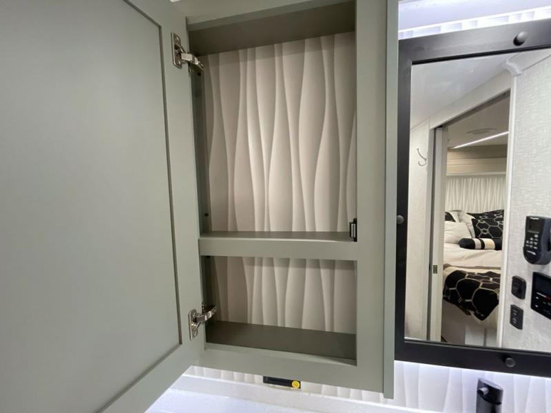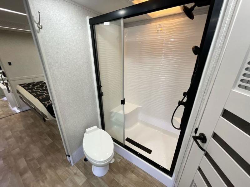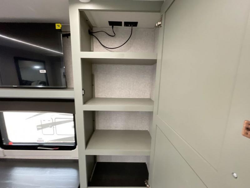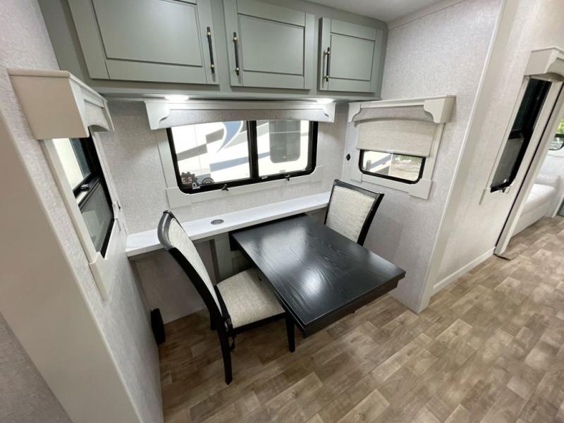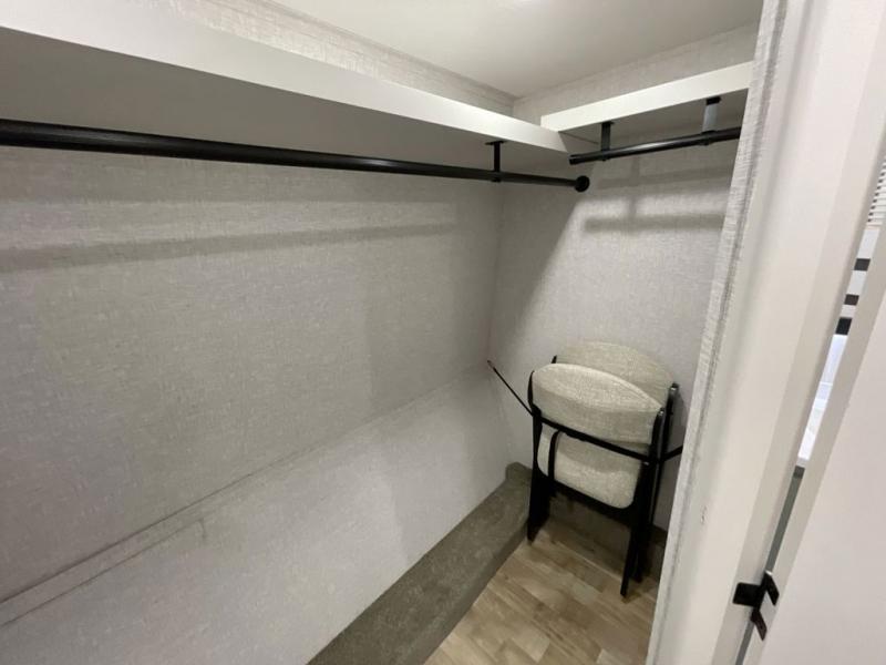 You are going to wish you found the Redwood fifth wheels sooner! With all of the residential comfort and modern luxury, you will be impressed. The Williamsburg Furniture Collection includes two premium dinette chairs, a buffet-style adjustable dinette with leaf extension, a residential-style sofa, and powered theater seating. The luxury further extends to the bedroom where you will find a gel-foam king bed with tilt and C-PAP shelves on both sides of the bed. The straight roof line gives a luxury profile, and there are preparations for a wireless backup camera as well as solar power. The seamless residential insulated heat ducts will efficiently heat your unit, and there is an exterior radio in the fully finished and heated pass-through with slat board storage.
