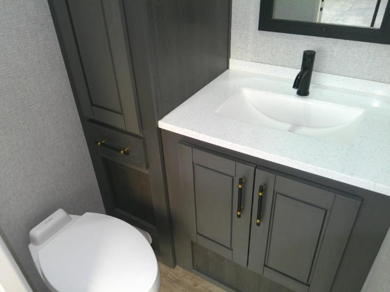 With any Regency destination trailer by Redwood RV, you will find it easier than ever to enjoy extended stays at the location of your choice. Each model is built with a Z-65 true gel coat fiberglass exterior, a fully walkable roof with one-piece Alpha-Ply roof material, and a 12" custom I-beam chassis for a strong foundation. There are also enclosed and heated water lines outside, along with wireless backup camera prep, a front insulated fiberglass cap, and dual pane windows. You'll love the standard Parks Package that includes USB ports throughout and a Winegard 360 to stay connected as you camp, plus a central vacuum and custom hardwood cabinet doors for that added touch of home! The Full-Time Living Package also comes standard and includes a multi-functional stainless steel sink, linoleum throughout, a dedicated garbage cabinet, and a power vent in the bathroom to name a few conveniences!