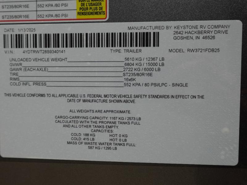 New 2025 Redwood RV Regency 3721FDB Destination Trailer
