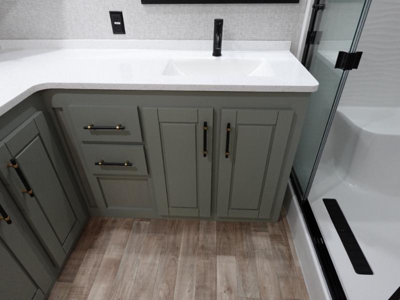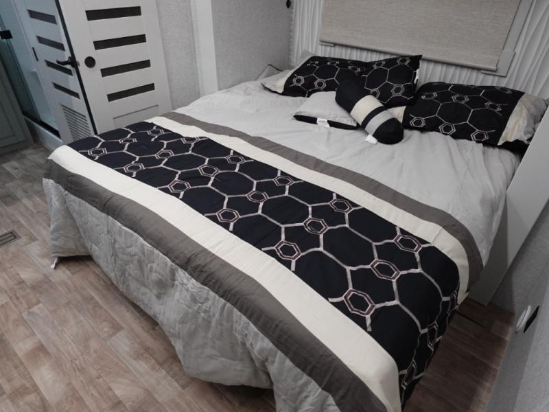 With any Regency destination trailer by Redwood RV, you will find it easier than ever to enjoy extended stays at the location of your choice. Each model is built with a Z-65 true gel coat fiberglass exterior, a fully walkable roof with one-piece Alpha-Ply roof material, and a 12" custom I-beam chassis for a strong foundation. There are also enclosed and heated water lines outside, along with wireless backup camera prep, a front insulated fiberglass cap, and dual pane windows. You'll love the standard Parks Package that includes USB ports throughout and a Winegard 360 to stay connected as you camp, plus a central vacuum and custom hardwood cabinet doors for that added touch of home! The Full-Time Living Package also comes standard and includes a multi-functional stainless steel sink, linoleum throughout, a dedicated garbage cabinet, and a power vent in the bathroom to name a few conveniences!