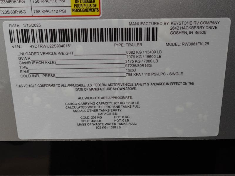 New 2025 Redwood RV Regency 3881FKL Destination Trailer