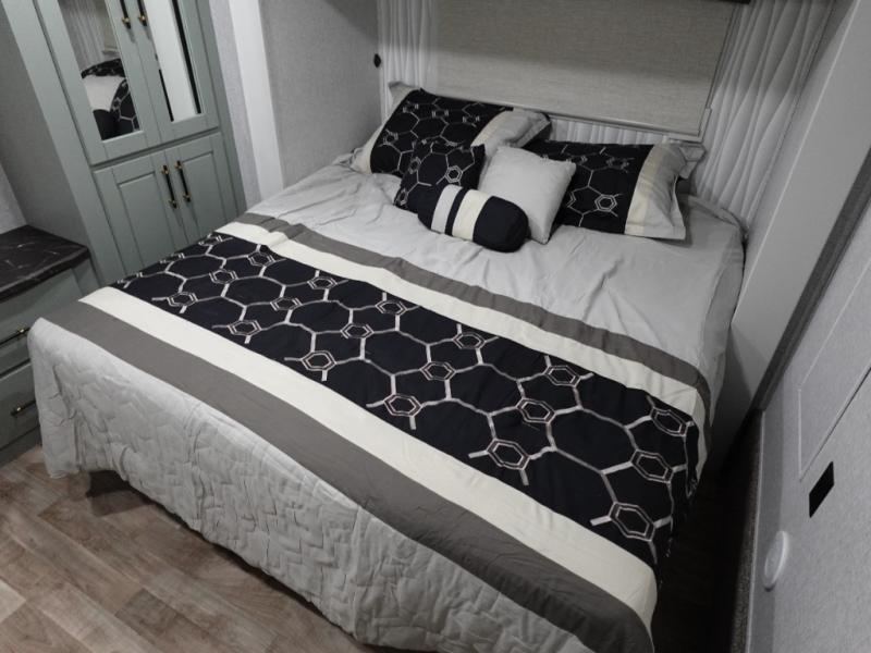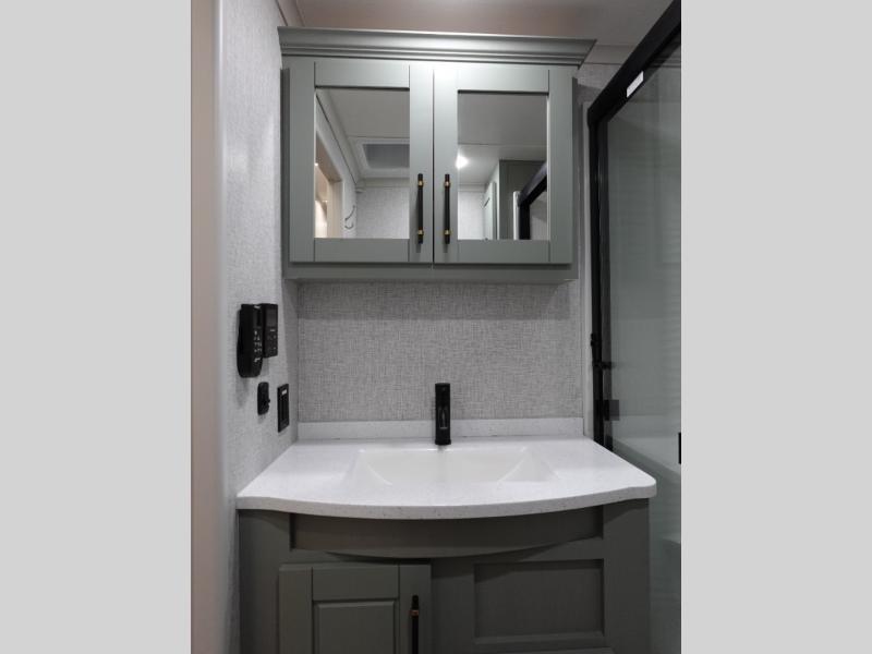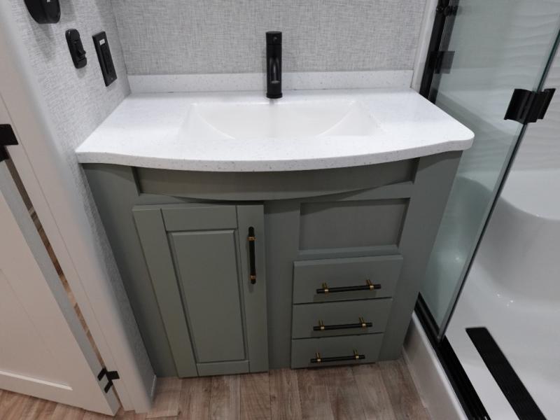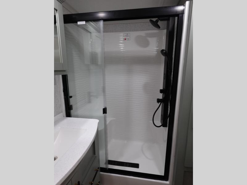 With any Regency destination trailer by Redwood RV, you will find it easier than ever to enjoy extended stays at the location of your choice. Each model is built with a Z-65 true gel coat fiberglass exterior, a fully walkable roof with one-piece Alpha-Ply roof material, and a 12" custom I-beam chassis for a strong foundation. There are also enclosed and heated water lines outside, along with wireless backup camera prep, a front insulated fiberglass cap, and dual pane windows. You'll love the standard Parks Package that includes USB ports throughout and a Winegard 360 to stay connected as you camp, plus a central vacuum and custom hardwood cabinet doors for that added touch of home! The Full-Time Living Package also comes standard and includes a multi-functional stainless steel sink, linoleum throughout, a dedicated garbage cabinet, and a power vent in the bathroom to name a few conveniences!