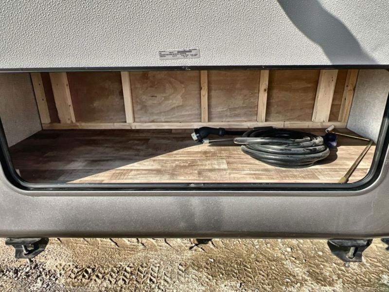 With any Regency destination trailer by Redwood RV, you will find it easier than ever to enjoy extended stays at the location of your choice. Each model is built with a Z-65 true gel coat fiberglass exterior, a fully walkable roof with one-piece Alpha-Ply roof material, and a 12" custom I-beam chassis for a strong foundation. There are also enclosed and heated water lines outside, along with wireless backup camera prep, a front insulated fiberglass cap, and dual pane windows. You'll love the standard Parks Package that includes USB ports throughout and a Winegard 360 to stay connected as you camp, plus a central vacuum and custom hardwood cabinet doors for that added touch of home! The Full-Time Living Package also comes standard and includes a multi-functional stainless steel sink, linoleum throughout, a dedicated garbage cabinet, and a power vent in the bathroom to name a few conveniences!