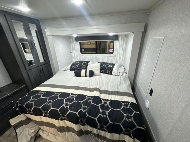 With any Regency destination trailer by Redwood RV, you will find it easier than ever to enjoy extended stays at the location of your choice. Each model is built with a Z-65 true gel coat fiberglass exterior, a fully walkable roof with one-piece Alpha-Ply roof material, and a 12" custom I-beam chassis for a strong foundation. There are also enclosed and heated water lines outside, along with wireless backup camera prep, a front insulated fiberglass cap, and dual pane windows. You'll love the standard Parks Package that includes USB ports throughout and a Winegard 360 to stay connected as you camp, plus a central vacuum and custom hardwood cabinet doors for that added touch of home! The Full-Time Living Package also comes standard and includes a multi-functional stainless steel sink, linoleum throughout, a dedicated garbage cabinet, and a power vent in the bathroom to name a few conveniences!