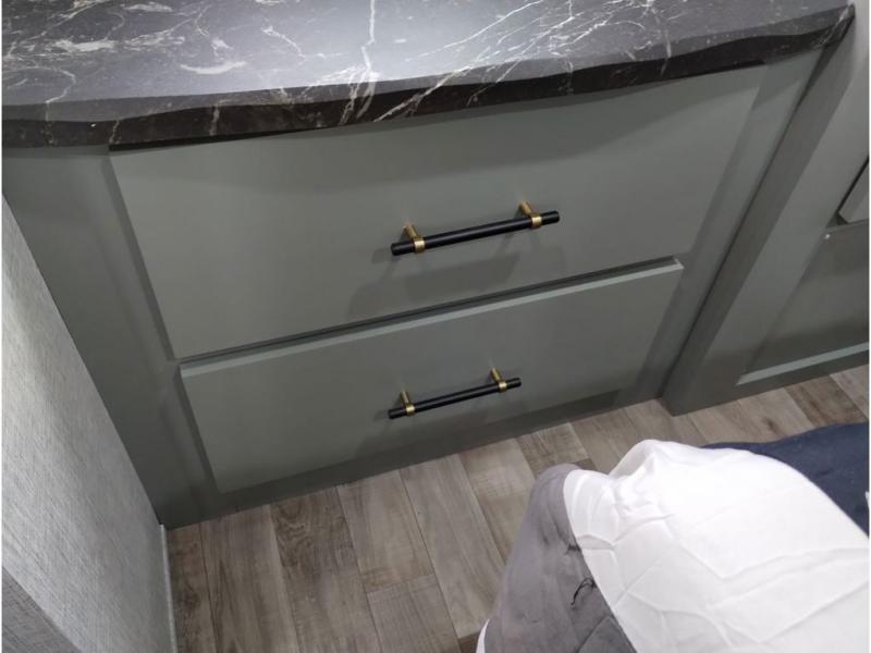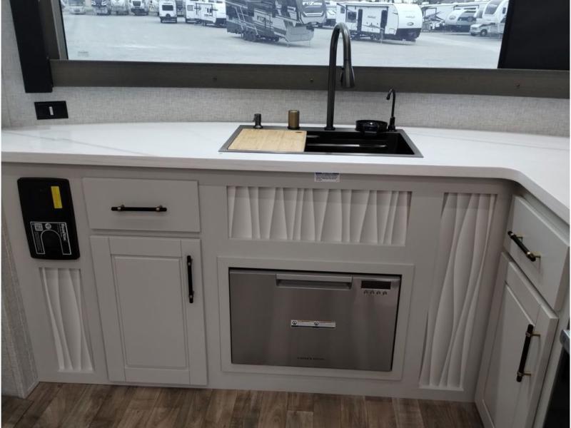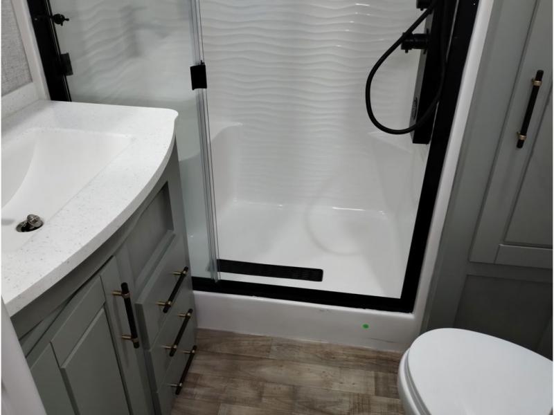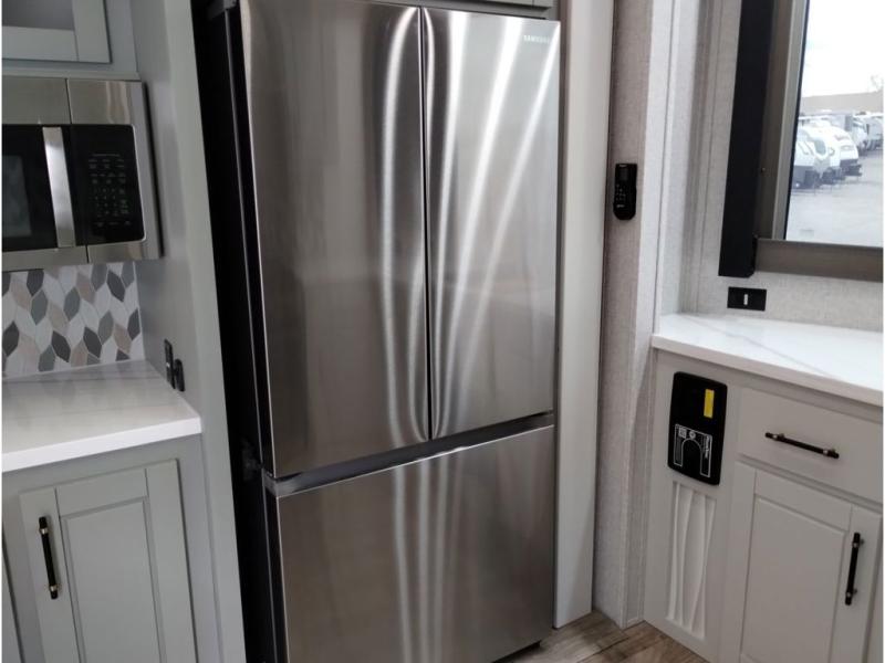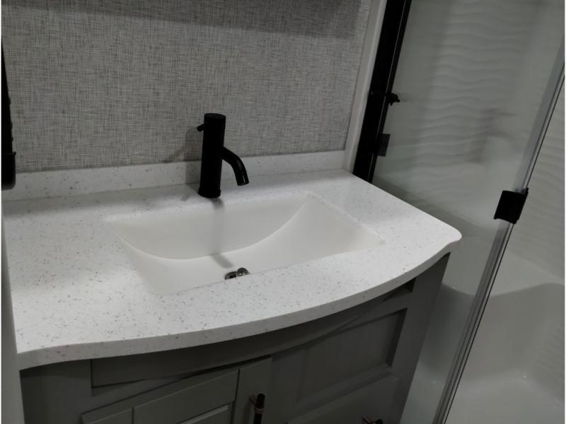 With any Regency destination trailer by Redwood RV, you will find it easier than ever to enjoy extended stays at the location of your choice. Each model is built with a Z-65 true gel coat fiberglass exterior, a fully walkable roof with one-piece Alpha-Ply roof material, and a 12" custom I-beam chassis for a strong foundation. There are also enclosed and heated water lines outside, along with wireless backup camera prep, a front insulated fiberglass cap, and dual pane windows. You'll love the standard Parks Package that includes USB ports throughout and a Winegard 360 to stay connected as you camp, plus a central vacuum and custom hardwood cabinet doors for that added touch of home! The Full-Time Living Package also comes standard and includes a multi-functional stainless steel sink, linoleum throughout, a dedicated garbage cabinet, and a power vent in the bathroom to name a few conveniences!