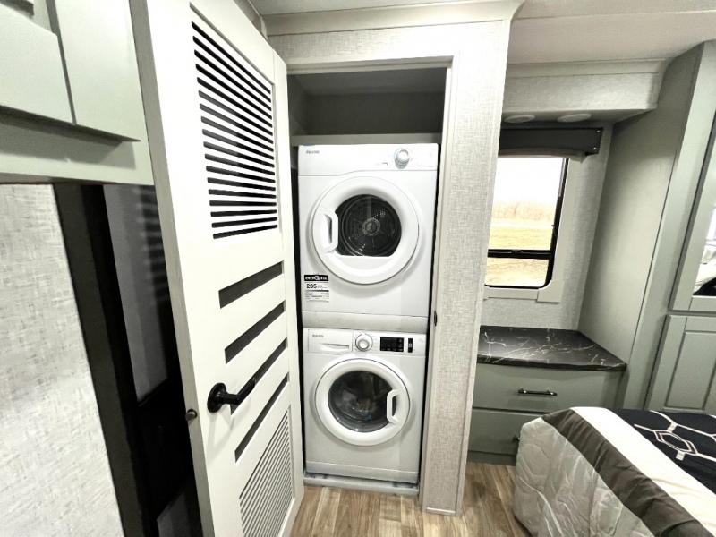 With any Regency destination trailer by Redwood RV, you will find it easier than ever to enjoy extended stays at the location of your choice. Each model is built with a Z-65 true gel coat fiberglass exterior, a fully walkable roof with one-piece Alpha-Ply roof material, and a 12" custom I-beam chassis for a strong foundation. There are also enclosed and heated water lines outside, along with wireless backup camera prep, a front insulated fiberglass cap, and dual pane windows. You'll love the standard Parks Package that includes USB ports throughout and a Winegard 360 to stay connected as you camp, plus a central vacuum and custom hardwood cabinet doors for that added touch of home! The Full-Time Living Package also comes standard and includes a multi-functional stainless steel sink, linoleum throughout, a dedicated garbage cabinet, and a power vent in the bathroom to name a few conveniences!