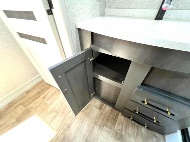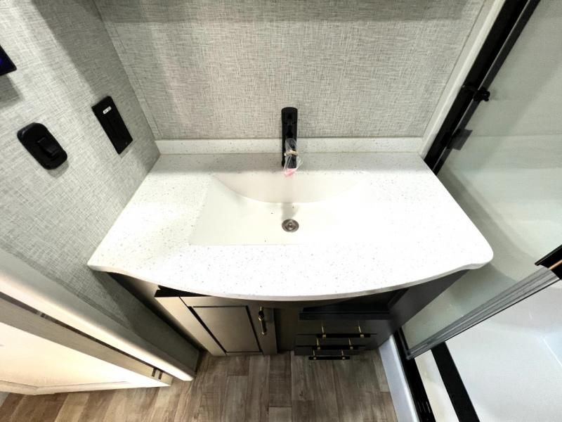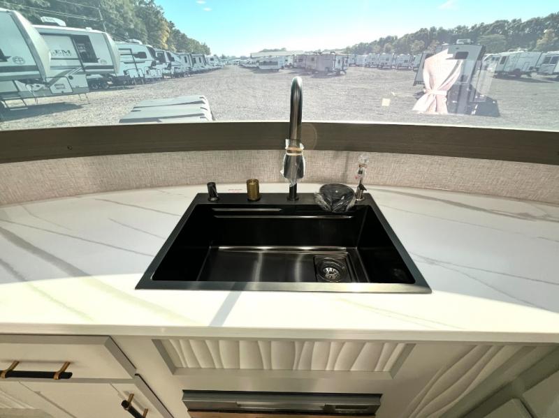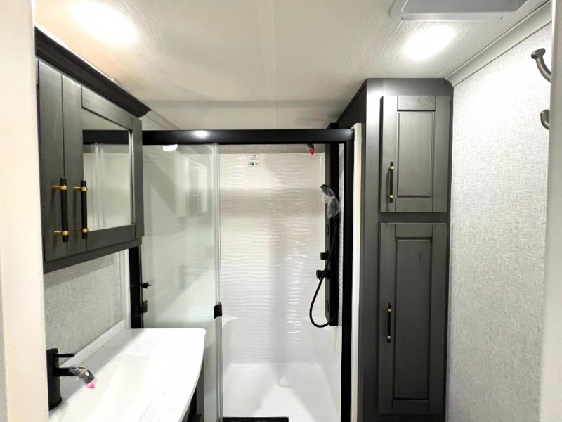 With any Regency destination trailer by Redwood RV, you will find it easier than ever to enjoy extended stays at the location of your choice. Each model is built with a Z-65 true gel coat fiberglass exterior, a fully walkable roof with one-piece Alpha-Ply roof material, and a 12" custom I-beam chassis for a strong foundation. There are also enclosed and heated water lines outside, along with wireless backup camera prep, a front insulated fiberglass cap, and dual pane windows. You'll love the standard Parks Package that includes USB ports throughout and a Winegard 360 to stay connected as you camp, plus a central vacuum and custom hardwood cabinet doors for that added touch of home! The Full-Time Living Package also comes standard and includes a multi-functional stainless steel sink, linoleum throughout, a dedicated garbage cabinet, and a power vent in the bathroom to name a few conveniences!