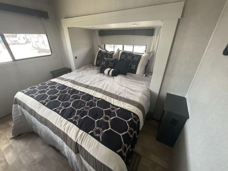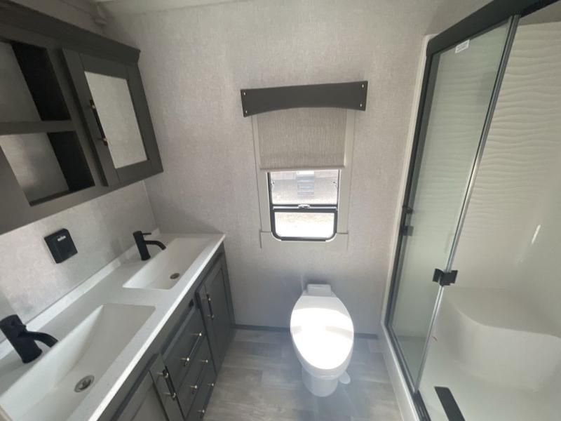With any Regency destination trailer by Redwood RV, you will find it easier than ever to enjoy extended stays at the location of your choice. Each model is built with a Z-65 true gel coat fiberglass exterior, a fully walkable roof with one-piece Alpha-Ply roof material, and a 12" custom I-beam chassis for a strong foundation. There are also enclosed and heated water lines outside, along with wireless backup camera prep, a front insulated fiberglass cap, and dual pane windows. You'll love the standard Parks Package that includes USB ports throughout and a Winegard 360 to stay connected as you camp, plus a central vacuum and custom hardwood cabinet doors for that added touch of home! The Full-Time Living Package also comes standard and includes a multi-functional stainless steel sink, linoleum throughout, a dedicated garbage cabinet, and a power vent in the bathroom to name a few conveniences!