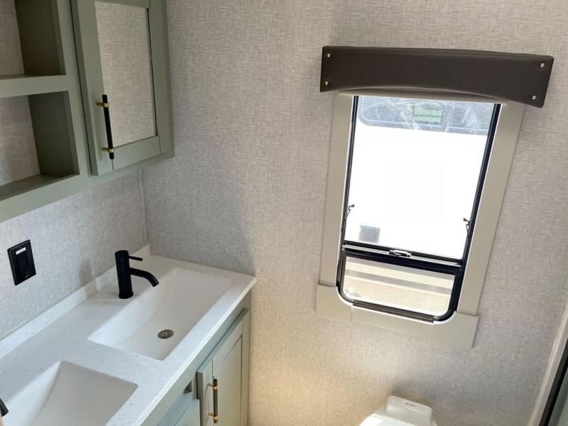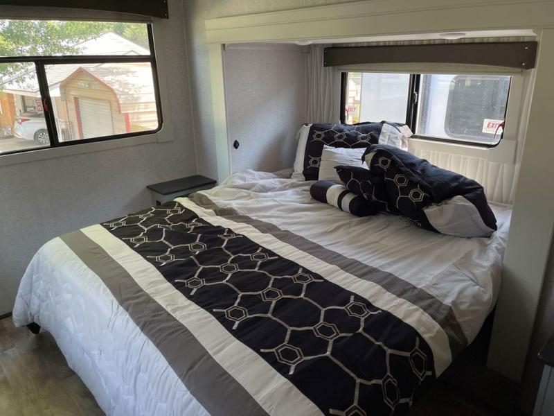 With any Regency destination trailer by Redwood RV, you will find it easier than ever to enjoy extended stays at the location of your choice. Each model is built with a Z-65 true gel coat fiberglass exterior, a fully walkable roof with one-piece Alpha-Ply roof material, and a 12" custom I-beam chassis for a strong foundation. There are also enclosed and heated water lines outside, along with wireless backup camera prep, a front insulated fiberglass cap, and dual pane windows. You'll love the standard Parks Package that includes USB ports throughout and a Winegard 360 to stay connected as you camp, plus a central vacuum and custom hardwood cabinet doors for that added touch of home! The Full-Time Living Package also comes standard and includes a multi-functional stainless steel sink, linoleum throughout, a dedicated garbage cabinet, and a power vent in the bathroom to name a few conveniences!