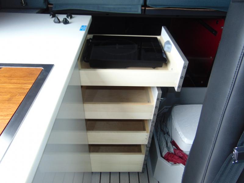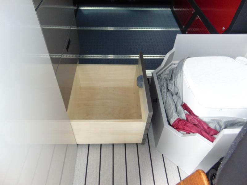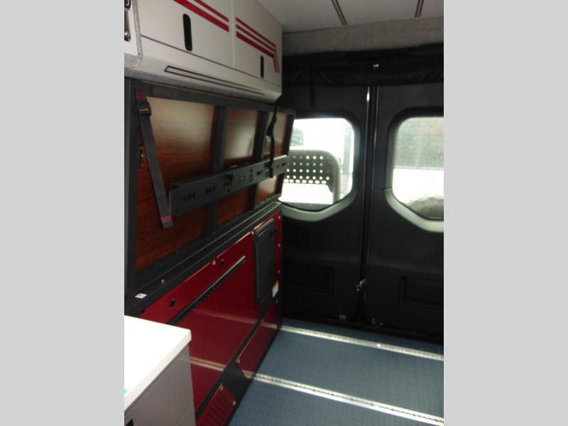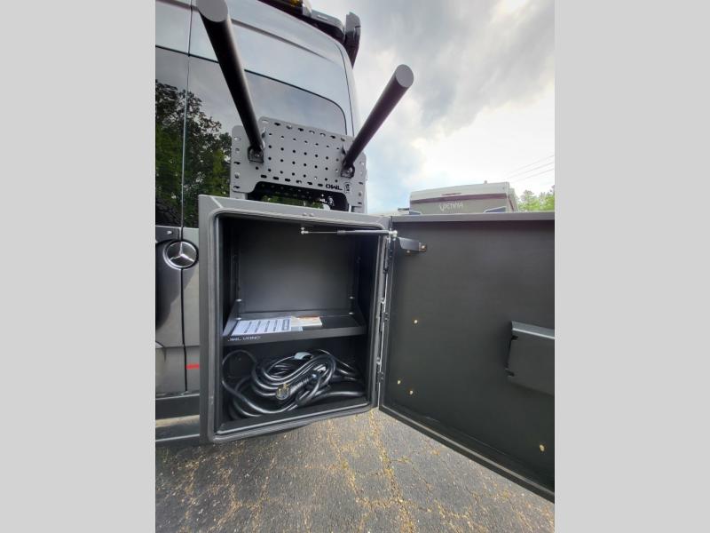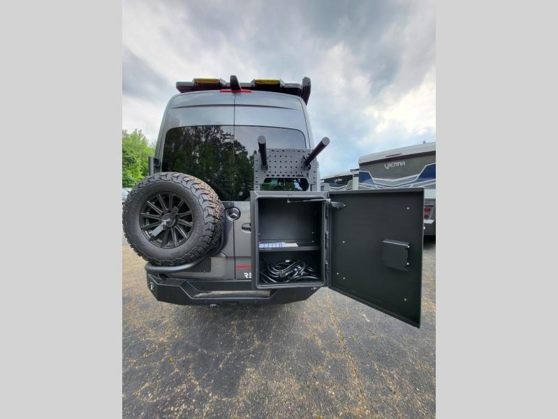 Step inside and experience residential-style amenities in a compact, go-anywhere package. The fully equipped kitchen includes high-end appliances, ample countertop space, and plenty of storage for all your gear. Relax in the spacious lounge area after a long day of exploring, or convert the comfortable sleeping space for a restful night under the stars. With advanced solar power, lithium battery options, and all-weather insulation, the Aegis is built for year-round travel – from mountain trails to coastal highways.