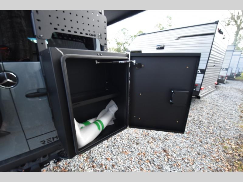 With any Remove Vans Class B diesel coach, you will enjoy connectivity, power, and comfort throughout! Each model sits on a trusted Mercedes-Benz sprinter all-wheel drive chassis with a 208HP twin-turbo, high power 4 cylinder diesel engine. The MoPoWa system includes a 190W solar panel, 16.8 kWh 100% usable battery storage with a built-in reserve, and a 51V Lithionics NEVERDIE power system to keep your adventurous lifestyle going. An upgraded Rixen hydronic air and water heating system also comes standard, along with an external shower, a 35 gallon fresh water tank and more! If you plan to work while you're on the road, the Starlink high-performance dish will provide high-speed mobile internet anywhere you roam. Each model also includes a high-quality, dual flooring system, a premium Italian composite, scratch-proof kitchen, a "Pennyworth" van control system, and Rolef custom bug screen to let fresh air in while keeping bugs out!