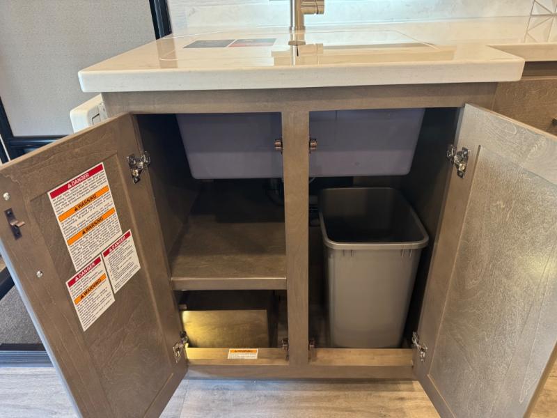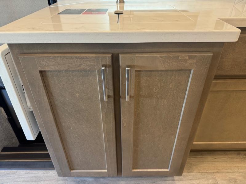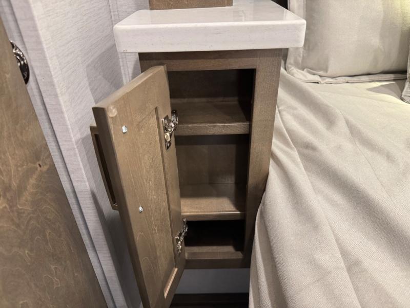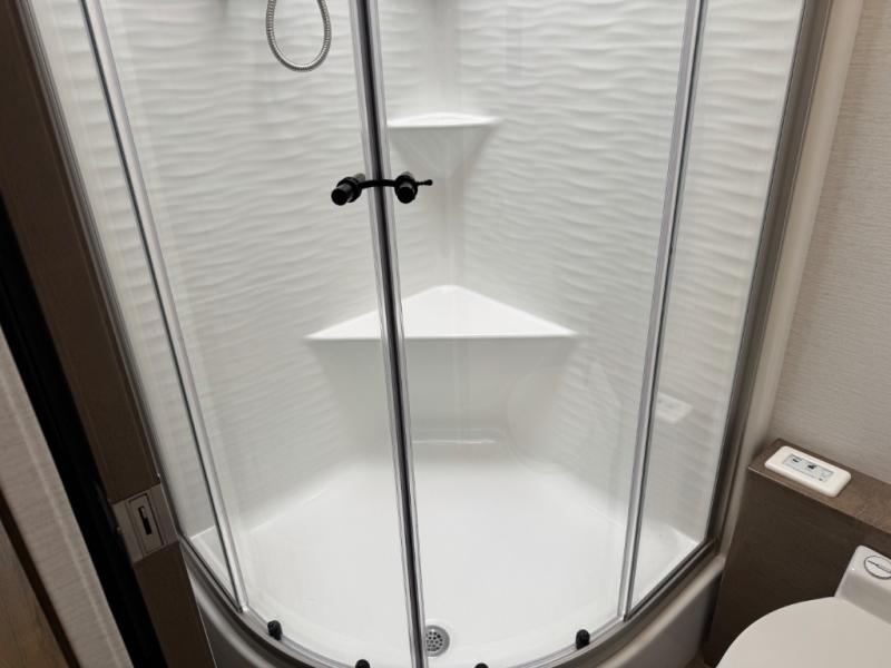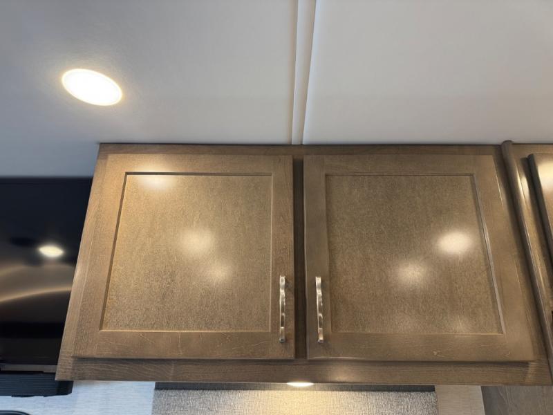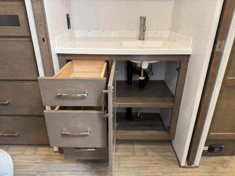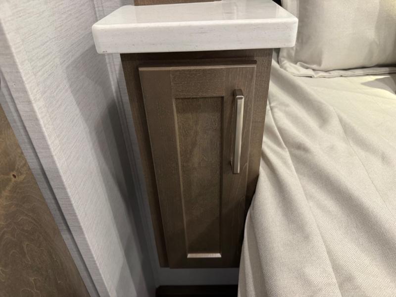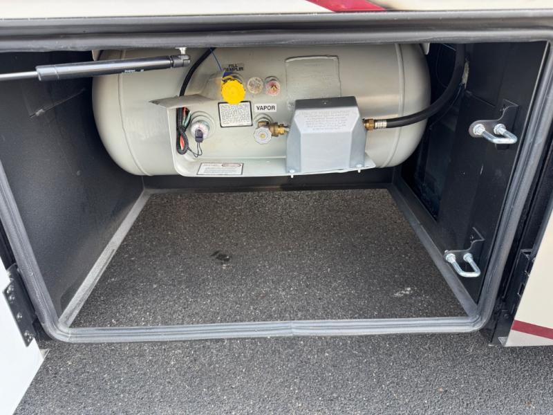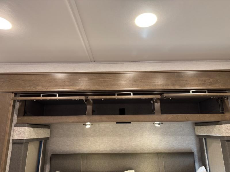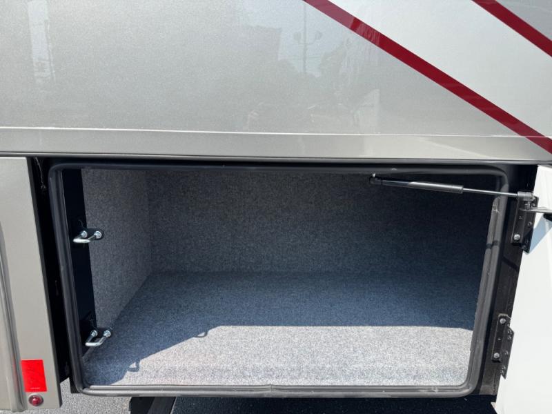 Enjoy a home on wheels with this motorhome! Start your mornings feeling refreshed and ready to go after sleeping on the 66" x 74" mini-king bed and showering in the radius shower with a skylight above and a vent to eliminate steam in the separated bathroom. The bedroom also has a 32" Smart LED TV with a storage bench, a closet, and a wardrobe that is pre-wired and plumbed for an optional washer and dryer. You can prepare your best meals with the three burner cooktop and 18 cu. ft. residential refrigerator and enjoy them at the booth dinette. The sofa sleeper and 54" x 78" bunk over cab offer comfortable sleeping spaces for extra guests too!