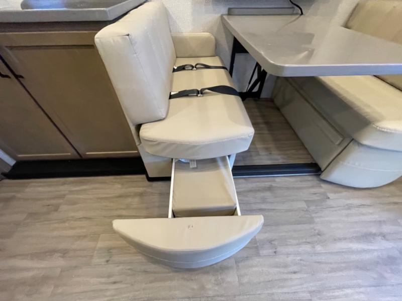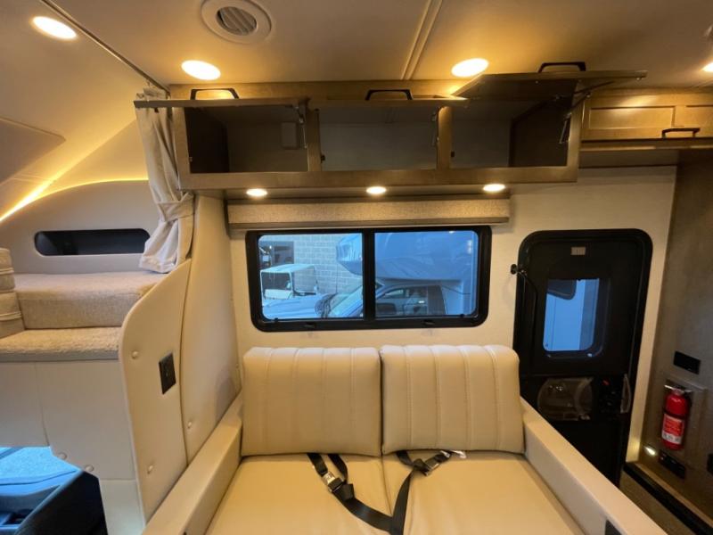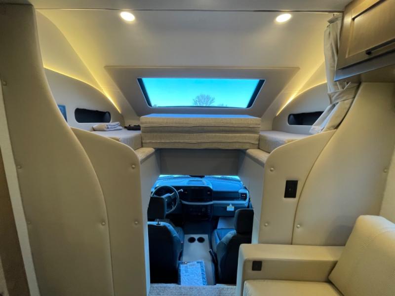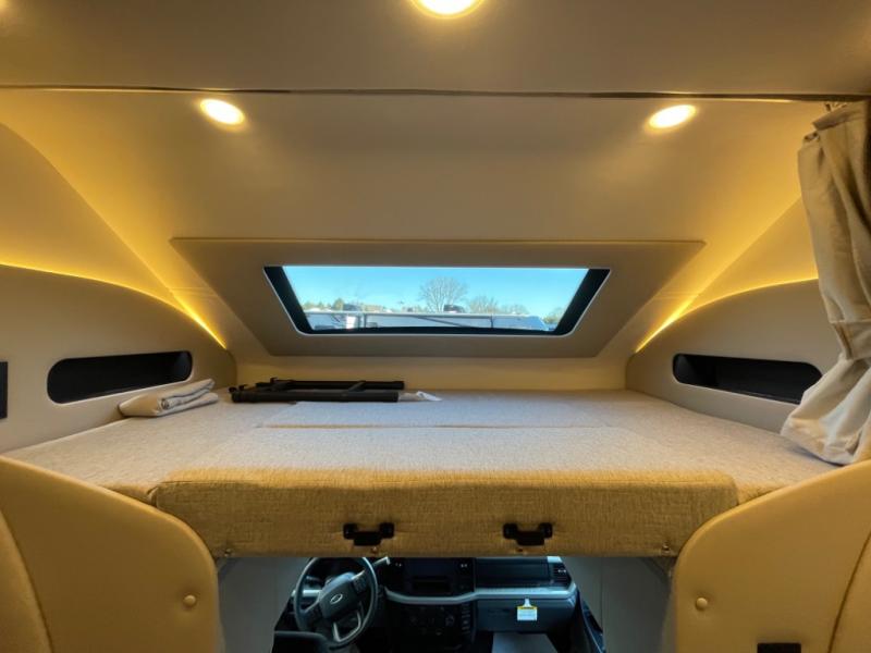 Multipurpose Sleeping Spaces: In addition to the master bedroom, enjoy an overhead bunk above the cab and a convertible dinette for sleeping up to six people.