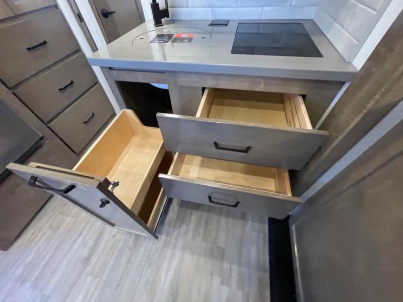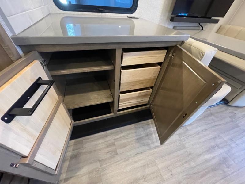 Dual Slide-Outs: The opposing slides in the living area and bedroom expand your interior space, offering room to relax, cook, and entertain.