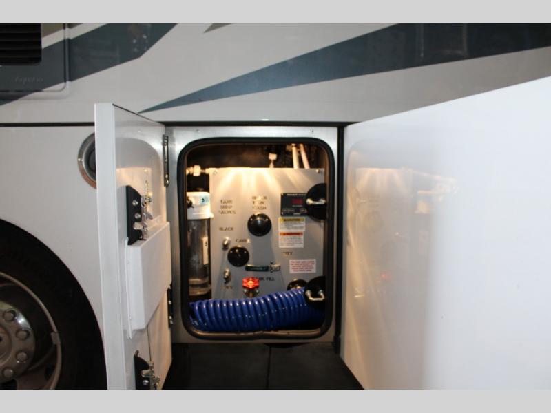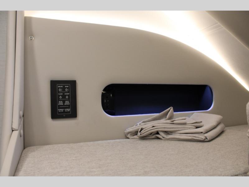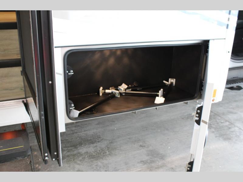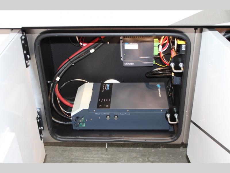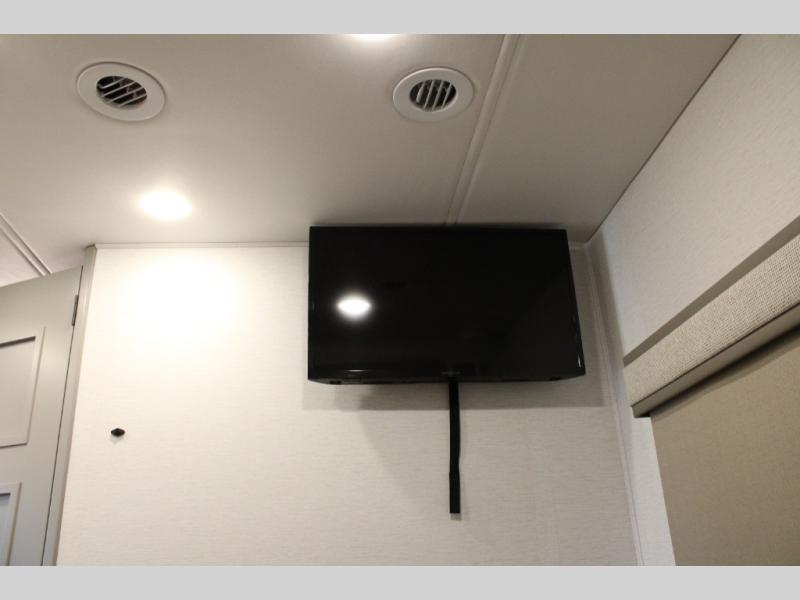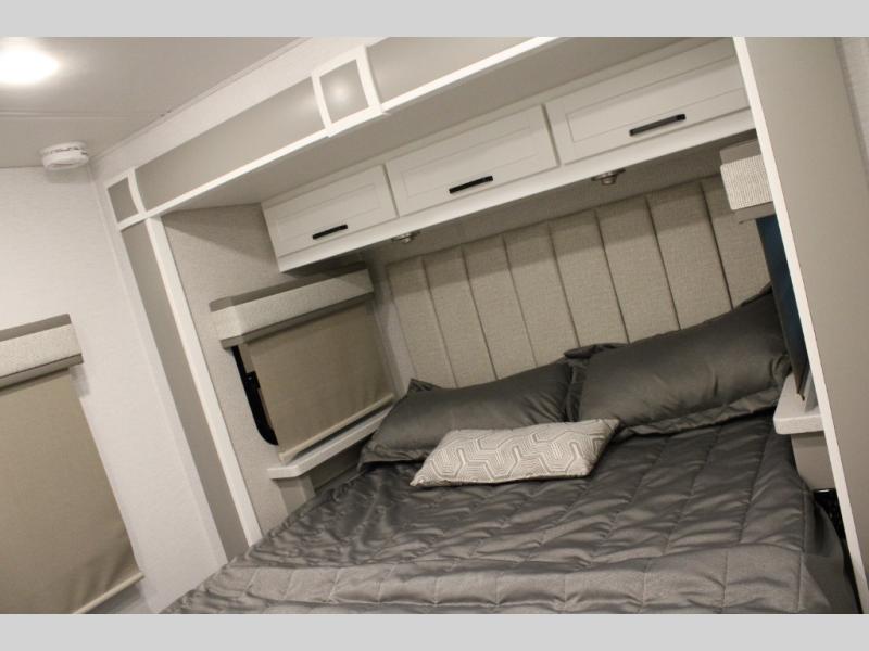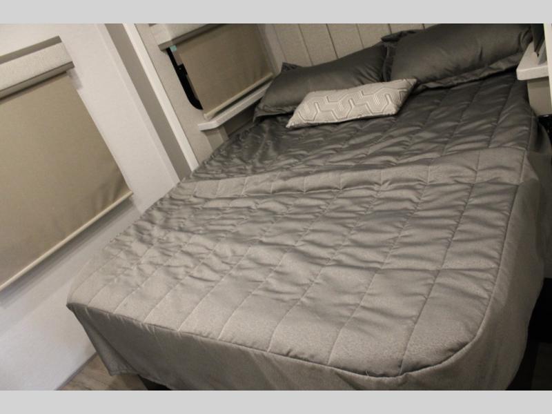 Inside, the Veracruz is nothing short of impressive. You’ll find solid wood cabinetry, solid surface countertops, and residential finishes throughout. The rear private bedroom offers a 65" x 75" queen bed, ample wardrobe storage, and a 32" LED TV, giving you a peaceful retreat at the end of each day.