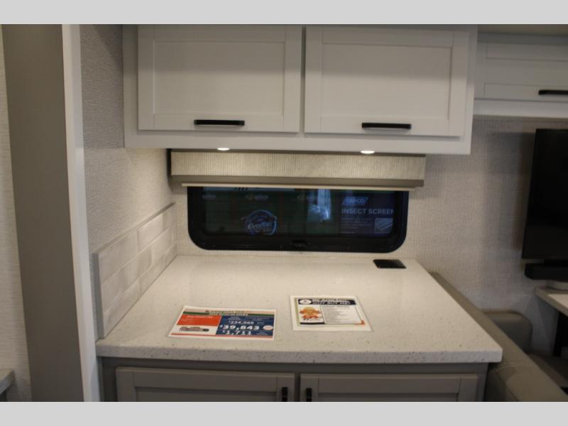 Need to bring the whole crew? This motorhome comfortably sleeps up to eight with the cab-over bunk, sofa sleeper, and dinette, making it ideal for families or group travel. The 42" LED living room TV, overhead cabinets, and spacious layout ensure there’s room to lounge, relax, or entertain—rain or shine.