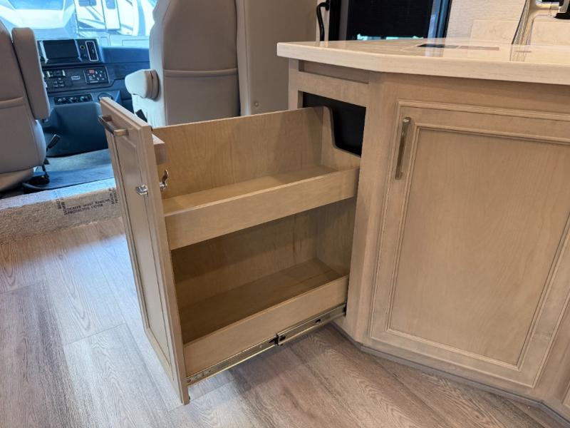 - Solid hardwood cabinets and articulating hinges