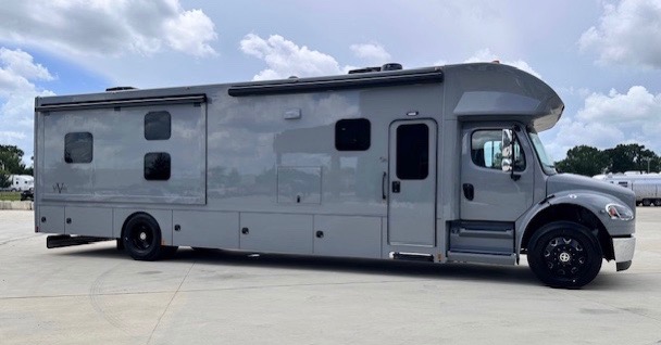 With any Renegade Verona Super C diesel motorhome, you will have confidence to explore the open road! The Cummins 360HP 3200TRV Allison transmission gives you the power and performance to travel anywhere, and the 3000-watt true sine inverter makes this an electric coach, plus the aluminum automotive cab construction is designed and tested for occupant protection. The interior boast about the solid hardwood cabinets including every cabinet stile and passage door are made from hardwood for true residential craftsmanship and the articulating cabinet hinges complete the package. More luxurious features include the polished solid surface countertops, the memory foam mattress, and the wavy patterned fiberglass shower with glass door. Choose extreme luxury, purpose and durability, take a Verona on the road today!