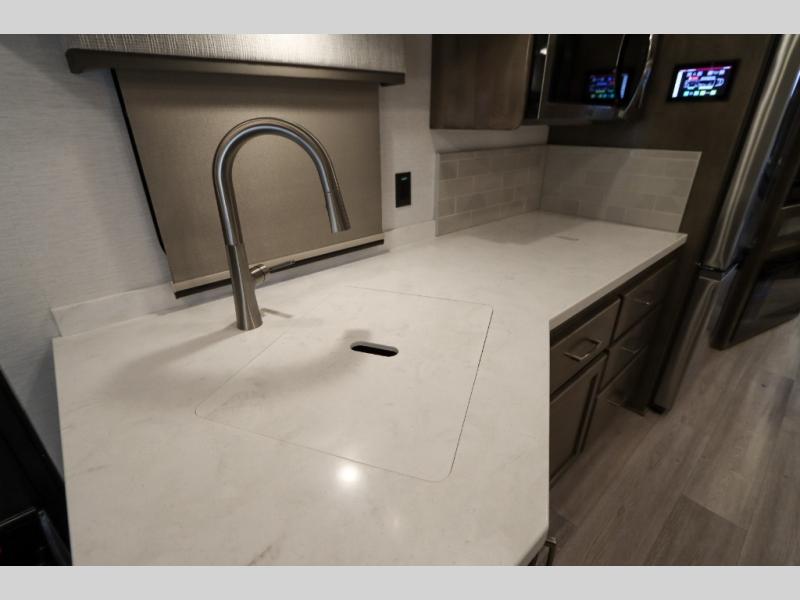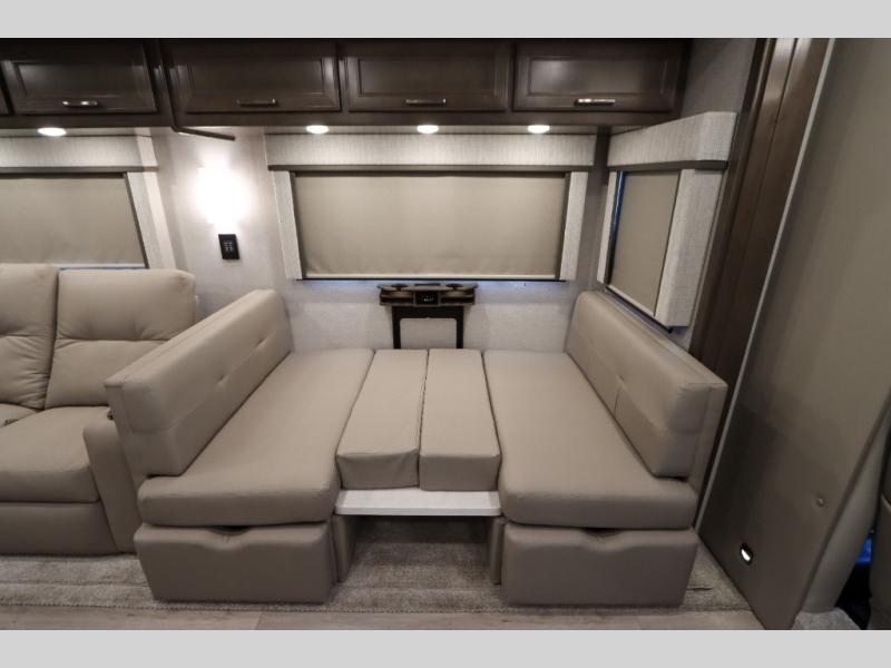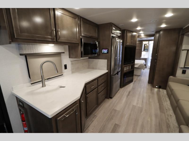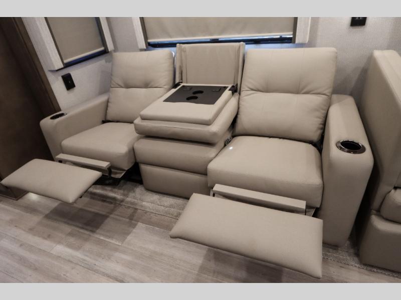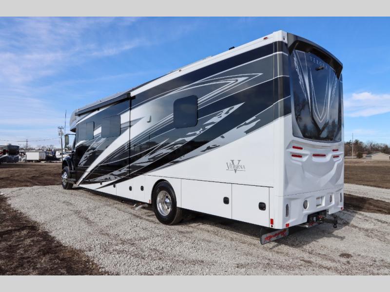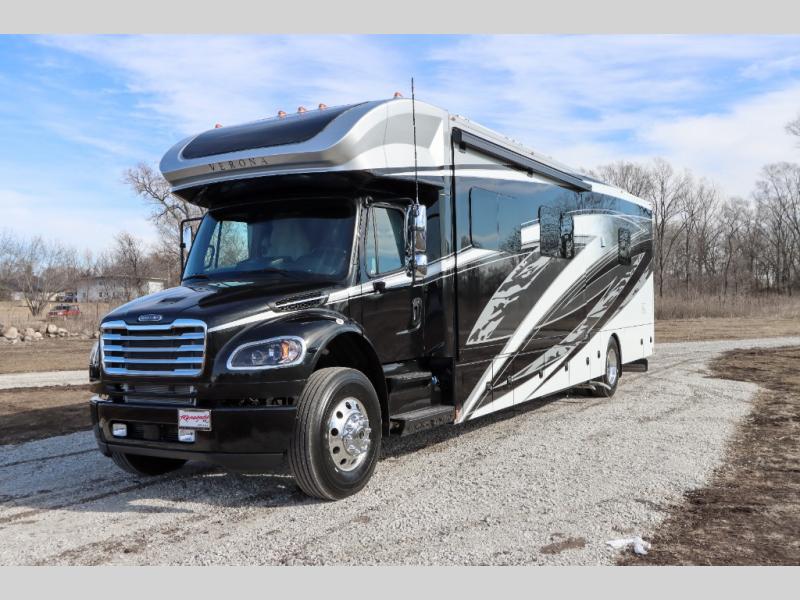 Why not enjoy the ride just as much as the destination, well you can with this Verona! The Airliner rear air suspension, the power/heated remote control mirrors, the Freightliner "Safety Assurance package" features and the comfortable seats will make that happen each trip. You will also have all the comforts of home such as the kitchen amenities including a convection microwave oven and a French door residential refrigerator, plus the Ultra-Soft slide-a-bed sofa and booth dinette to relax on. The half bath is super convenient when you have two or more onboard, and the master suite offers a king bed slide with lots of storage and a 32" 4K Smart LED TV, plus a rear full bathroom. There is so much more to love about this coach, step right up!