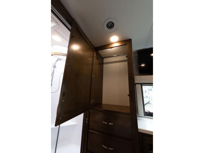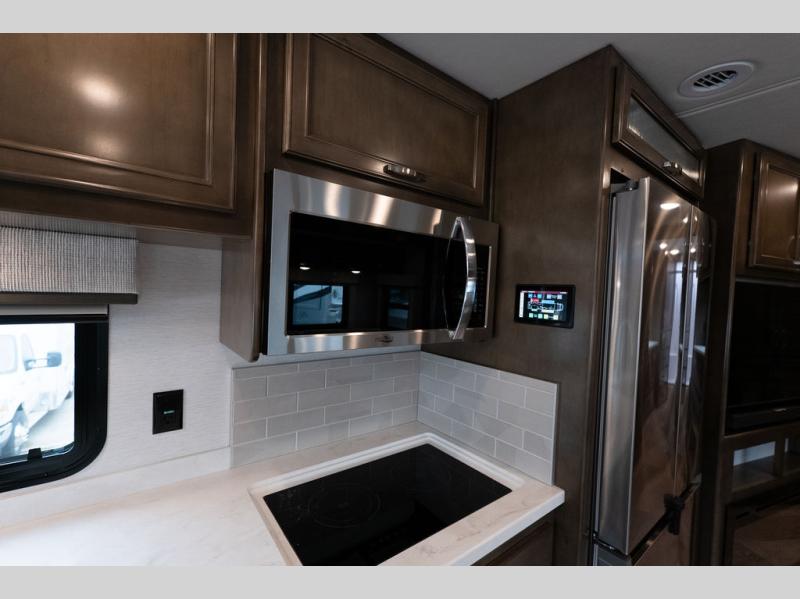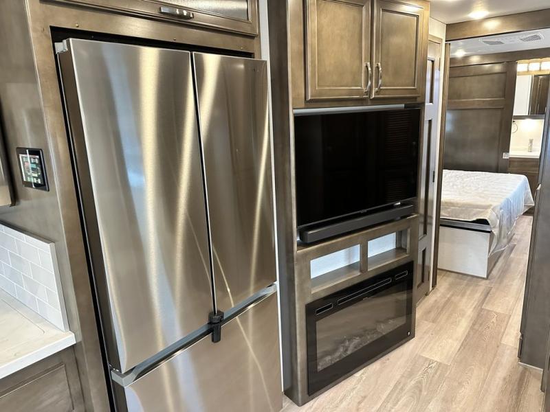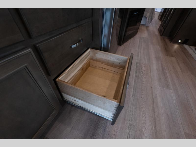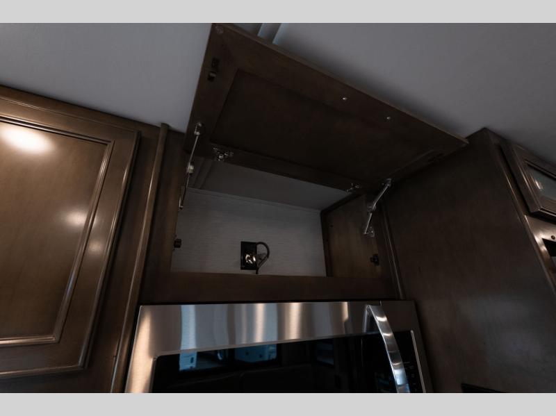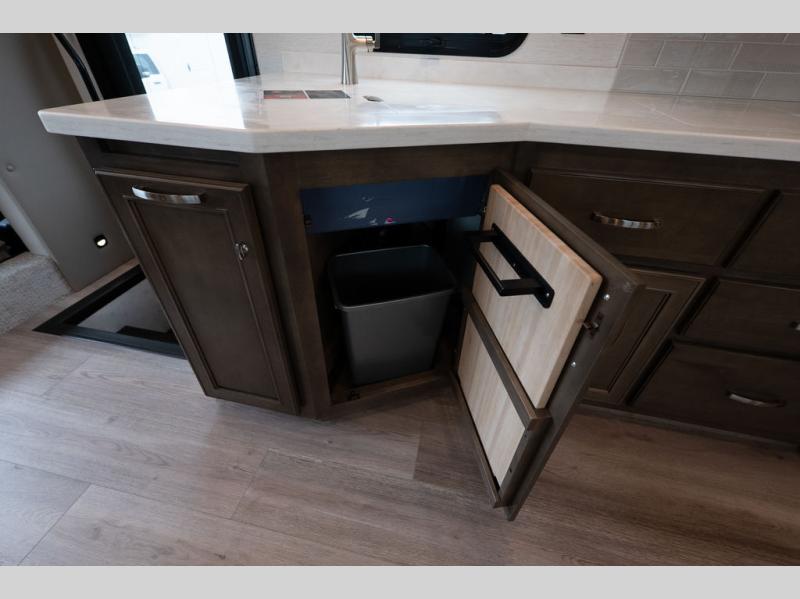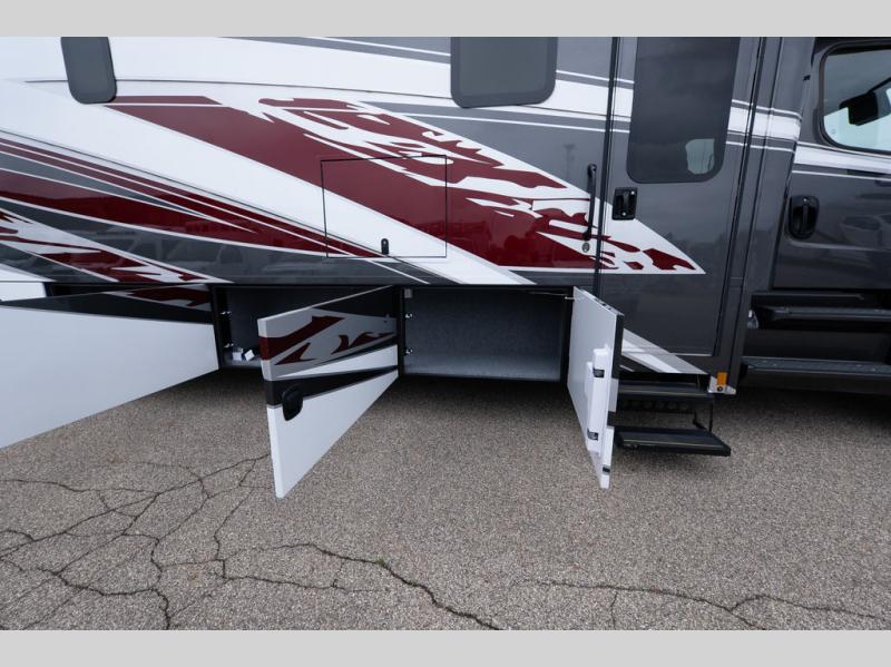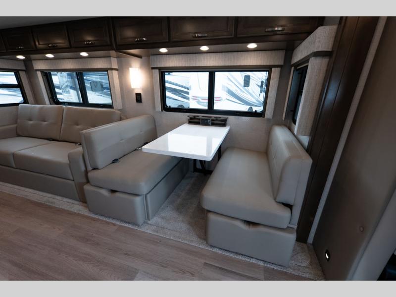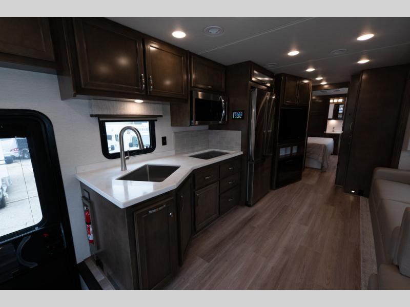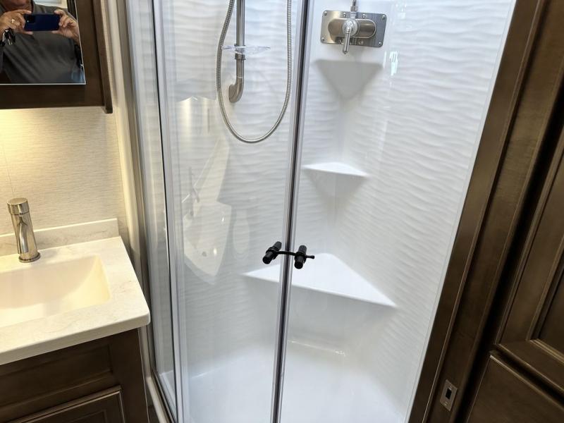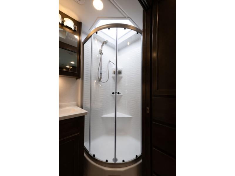 With any Renegade Verona Super C diesel motorhome, you will have confidence to explore the open road! The Cummins 360HP 3200TRV Allison transmission gives you the power and performance to travel anywhere, and the 3000-watt true sine wave inverter makes this an electric coach, plus the aluminum automotive cab construction is designed and tested for occupant protection. The interior boast about the solid hardwood cabinets including every cabinet stile and passage door are made from hardwood for true residential craftsmanship and the articulating cabinet hinges complete the package. More luxurious features include the solid surface countertops, the memory foam mattress, and the wavy patterned fiberglass shower with a glass door. Choose extreme luxury, purpose and durability; take a Verona on the road today!