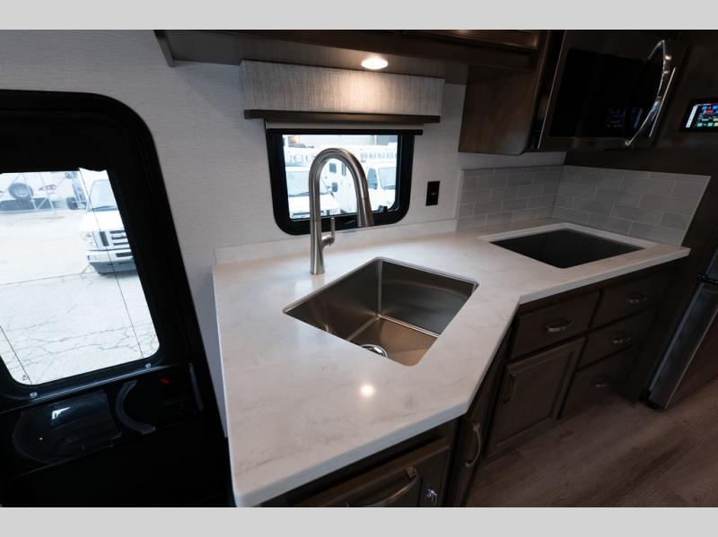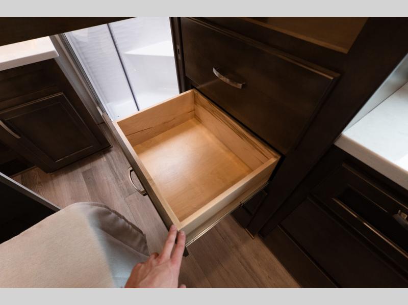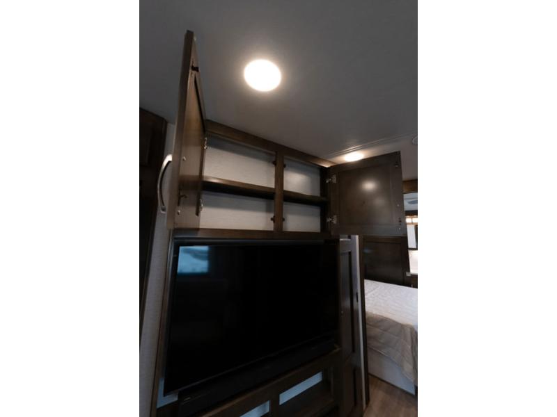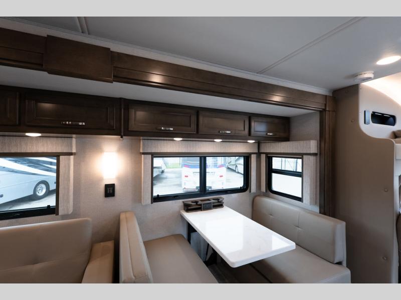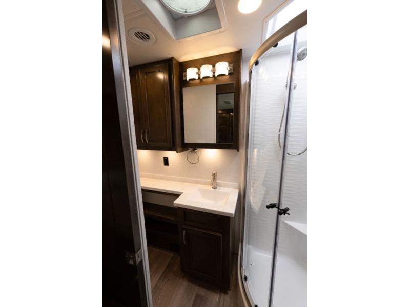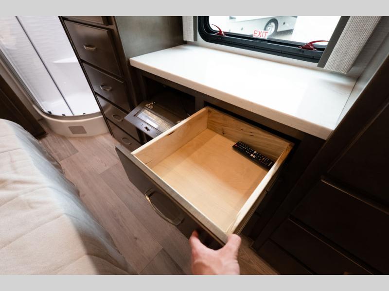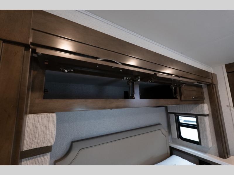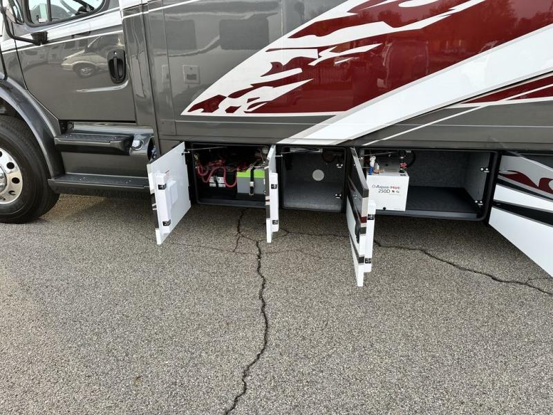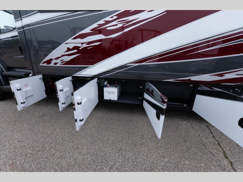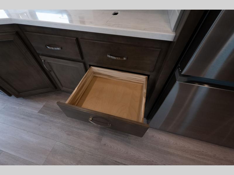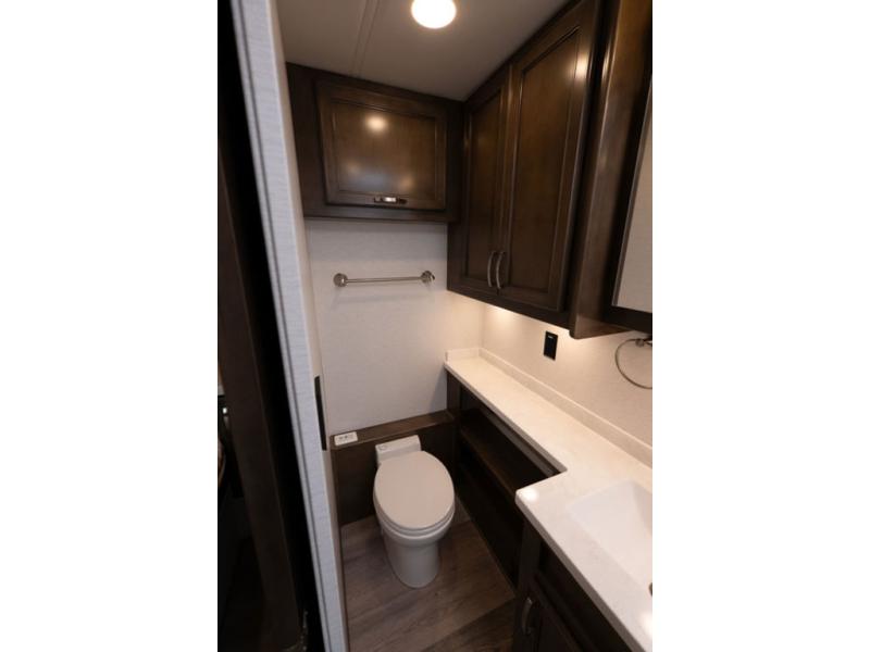 With any Renegade Verona Super C diesel motorhome, you will have confidence to explore the open road! The Cummins 360HP 3200TRV Allison transmission gives you the power and performance to travel anywhere, and the 3000-watt true sine wave inverter makes this an electric coach, plus the aluminum automotive cab construction is designed and tested for occupant protection. The interior boast about the solid hardwood cabinets including every cabinet stile and passage door are made from hardwood for true residential craftsmanship and the articulating cabinet hinges complete the package. More luxurious features include the solid surface countertops, the memory foam mattress, and the wavy patterned fiberglass shower with a glass door. Choose extreme luxury, purpose and durability; take a Verona on the road today!