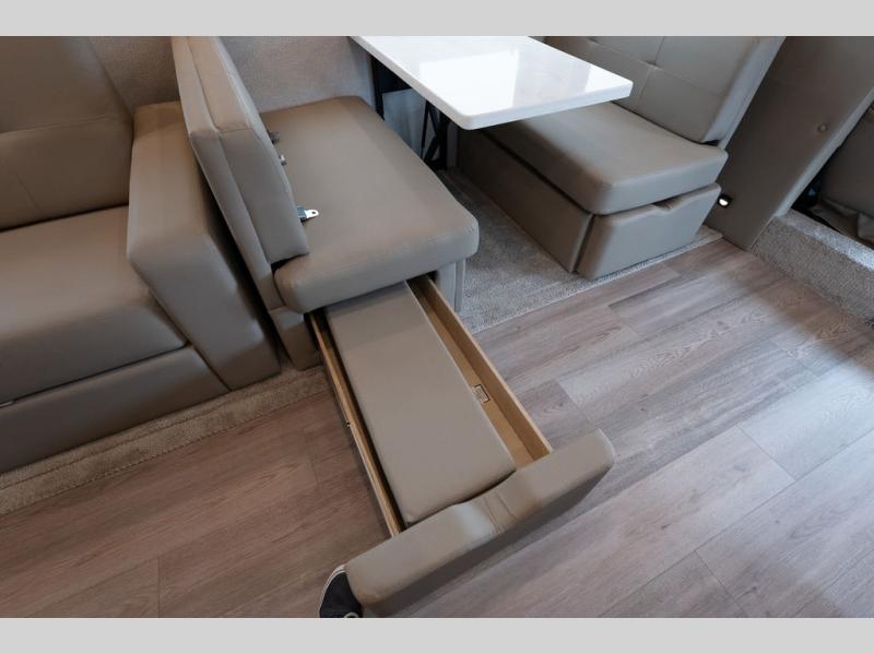 Why not enjoy the ride just as much as the destination, well you can with this Verona! The Airliner rear air suspension, power/heated remote control mirrors, and Freightliner "Safety Assurance package" will make that happen each trip. You will also have all the comforts of home such as the kitchen amenities including a convection microwave oven and a French door residential refrigerator, plus the Ultra-Soft sofa sleeper and booth dinette to relax on. The half bath is super convenient when you have two or more onboard, and the master suite offers a 66" x 74" king bed slide with lots of storage and a 32" 4K Smart LED TV, plus a rear full bathroom. There is so much more to love about this coach, step right up!