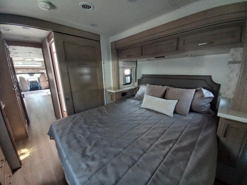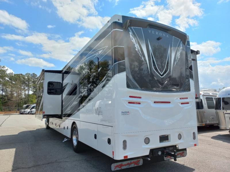 With any Renegade Verona Super C diesel motorhome, you will have confidence to explore the open road! The Cummins 360HP 3200TRV Allison transmission gives you the power and performance to travel anywhere, and the 3000-watt true sine wave inverter makes this an electric coach, plus the aluminum automotive cab construction is designed and tested for occupant protection. The interior boast about the solid hardwood cabinets including every cabinet stile and passage door are made from hardwood for true residential craftsmanship and the articulating cabinet hinges complete the package. More luxurious features include the solid surface countertops, the memory foam mattress, and the wavy patterned fiberglass shower with a glass door. Choose extreme luxury, purpose and durability; take a Verona on the road today!