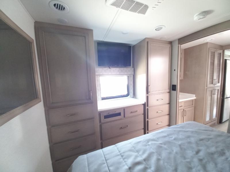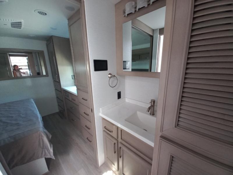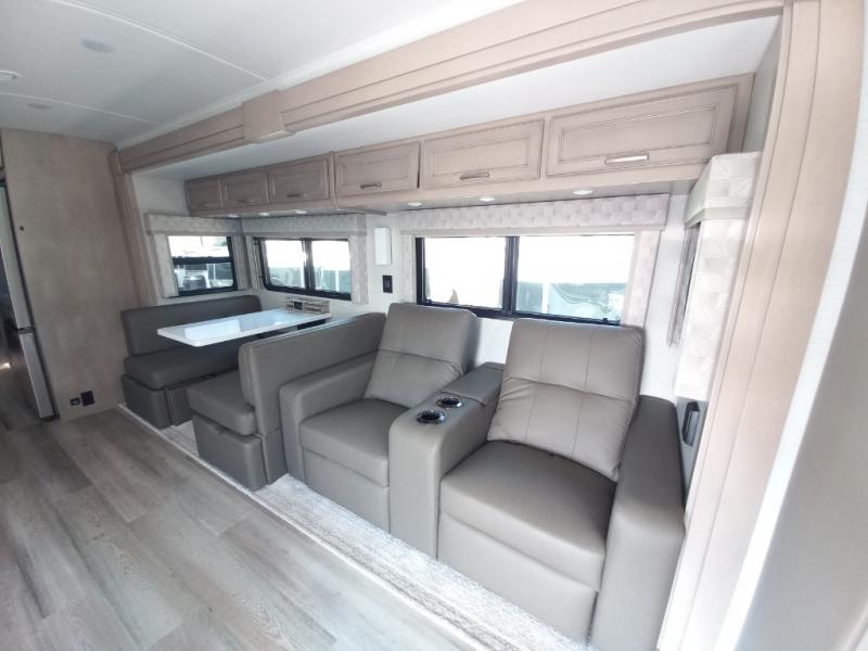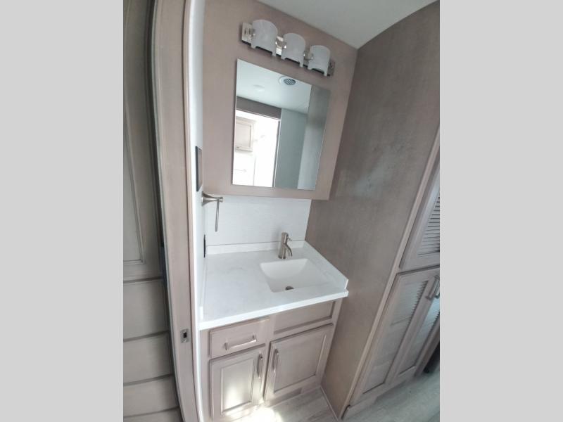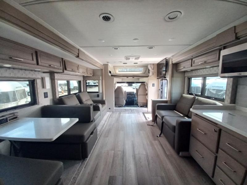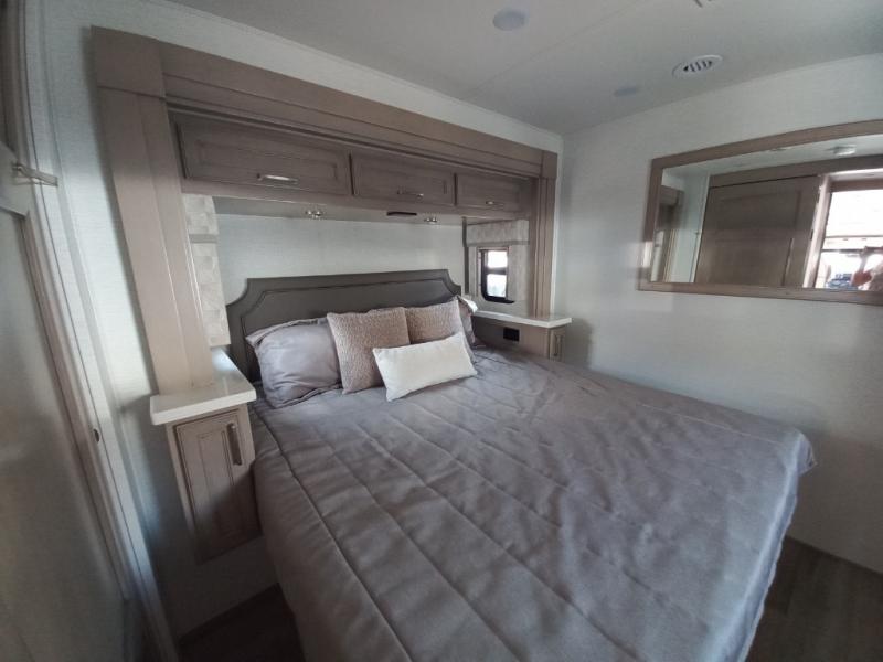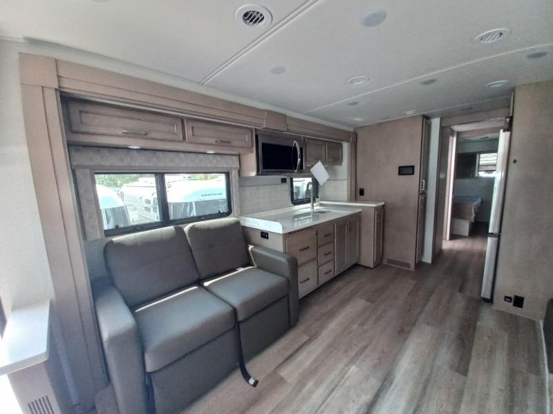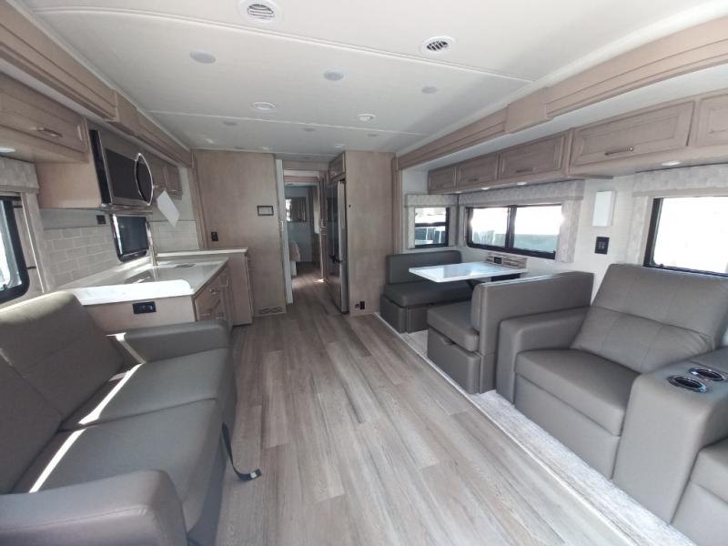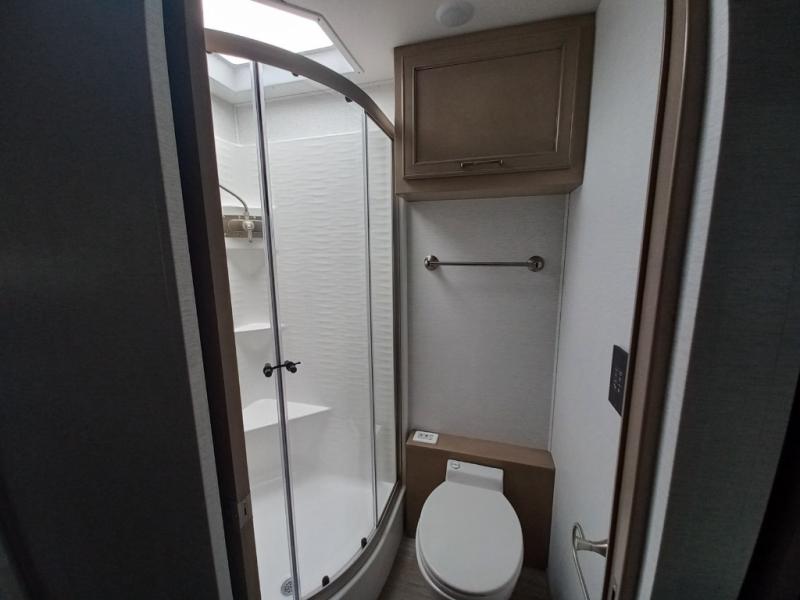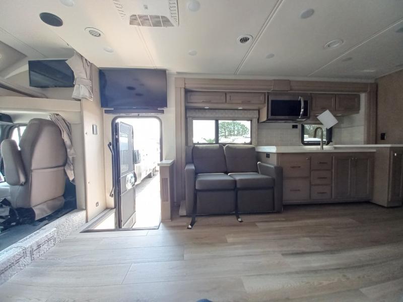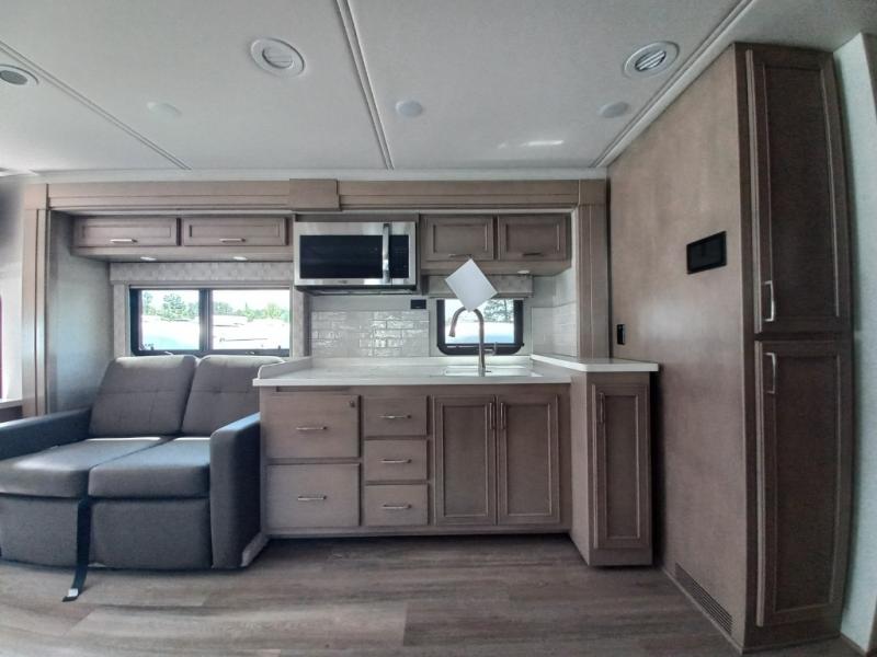 You will feel right at home in this motorhome! With a separated bathroom, one person can freshen up in the radius shower while another uses the sink or maybe put a load of laundry in the optional washer and dryer. There are plenty of places to sleep between the 66" x 74" mini-king bed in the rear private bedroom, the convertible booth dinette, and thesofa sleeper. You can prepare your best home cooked meals with the two burner induction cooktop in the fully equipped kitchen. Crank up the tunes with the Samsung soundbar with Bluetooth, wireless subwoofer, and JBL speakers. The Garmin infotainment with RV maps will ensure you stay on track!