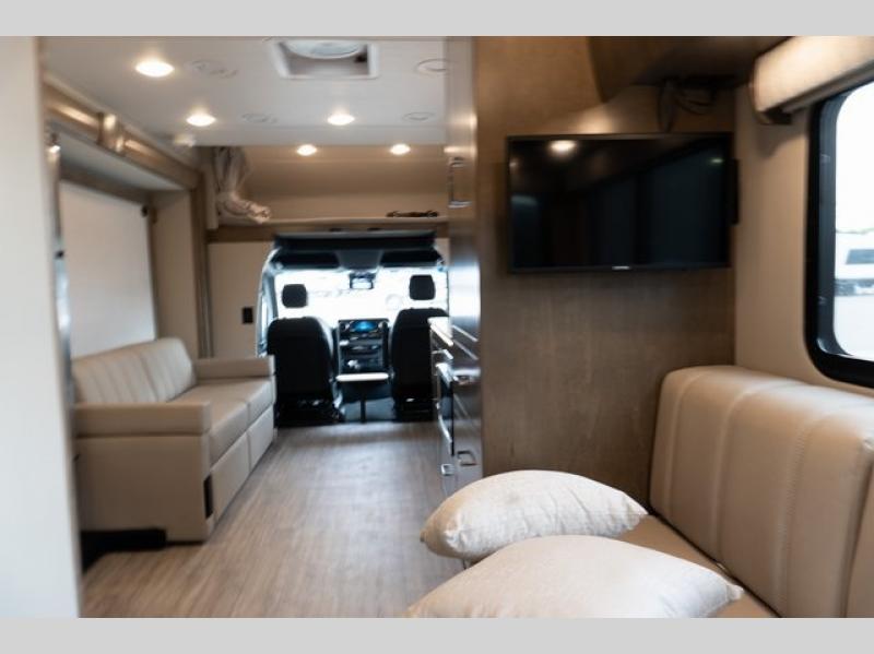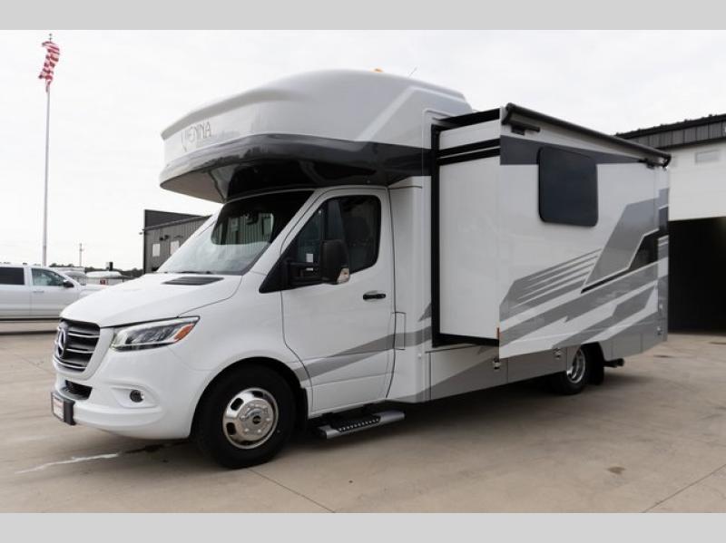 Luxury is in the details of each one of these Renegade Vienna Class C diesel motorhomes! They are built on a Mercedes-Benz Sprinter chassis, and include a four point hydraulic leveling system with app control, a 2000w true sine wave hybrid inverter, a 3.6KW LP generator with auto gen start, and Winegard Connect 2.0. You will appreciate the Truma™ Comfort Plus tankless water heater when showering, the accent lighting at the galley countertop for style, and the USB charging in the living area, bedroom and kitchen to keep your electronics ready. The Maple hardwood cabinetry completes the luxurious décor throughout the inside. Make your selection today!