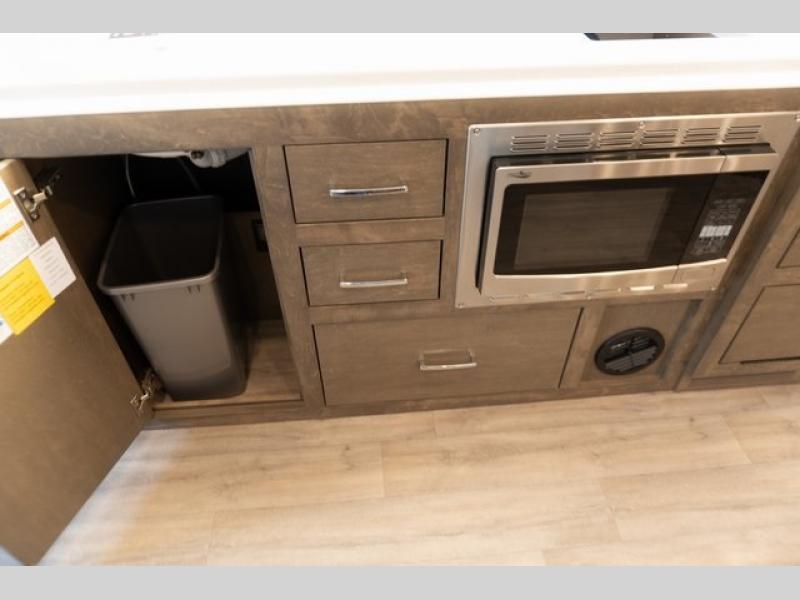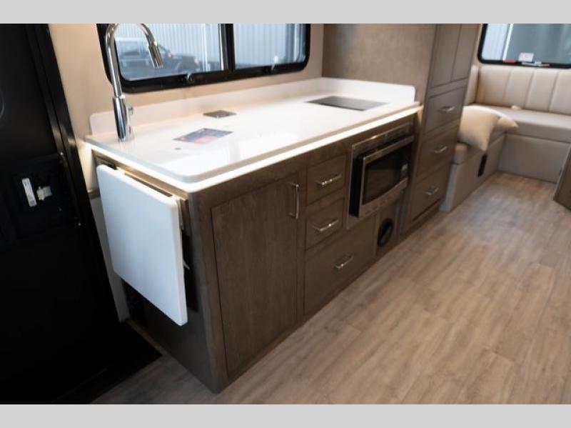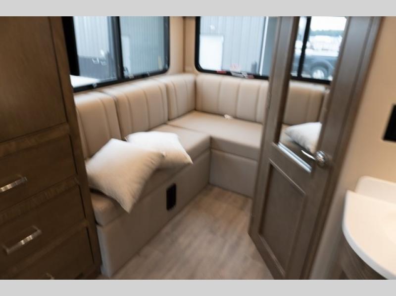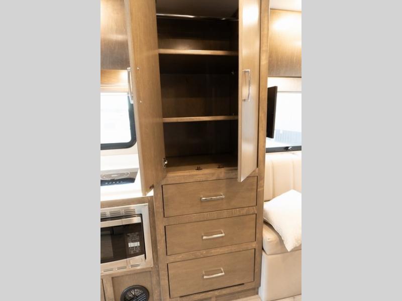 You will appreciate the versatility of this motorhome! Relax on the jiffy sofa during the day, then enjoy a restful night's sleep on the Murphy bed. A cozy L-shaped sofa is tucked in the rear corner and features storage beneath. The rear corner bath includes a sink outside the door for flexible use. The kitchen features an 8 cu. ft. refrigerator, microwave, and pantry, plus a closet to store miscellaneous items. And with a 46" x 80" bunk mattress above the cab, another person can join in on the fun!