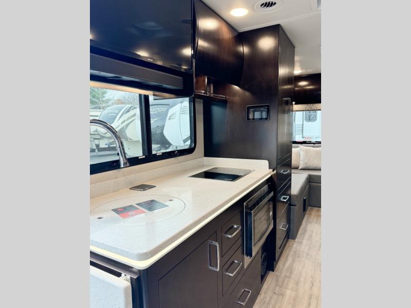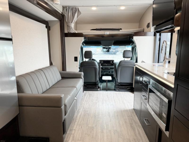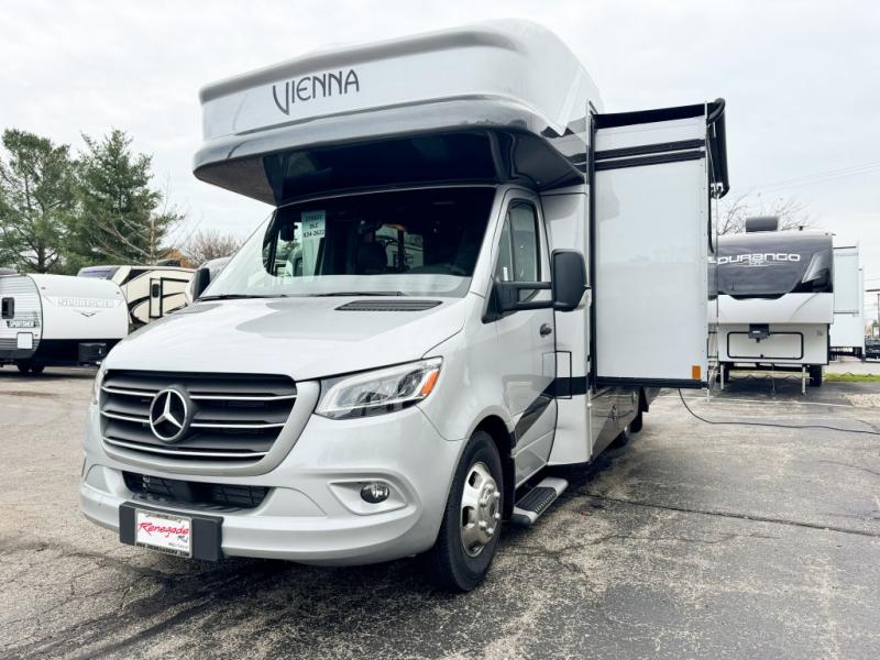 Luxury is in the details of each one of these Renegade Vienna Class C diesel motorhomes! They are built on a Mercedes-Benz Sprinter chassis, and include a four point hydraulic leveling system with app control, a 2000w true sine wave hybrid inverter, a 3.6KW LP generator with auto gen start, and Winegard Connect 2.0. You will appreciate the Truma™ Comfort Plus tankless water heater when showering, the accent lighting at the galley countertop for style, and the USB charging in the living area, bedroom and kitchen to keep your electronics ready. The Maple hardwood cabinetry completes the luxurious décor throughout the inside. Make your selection today!