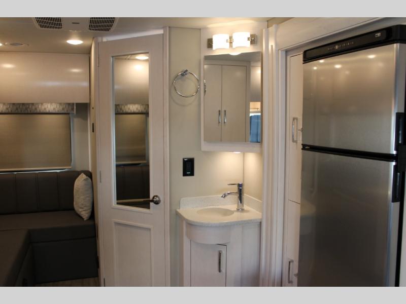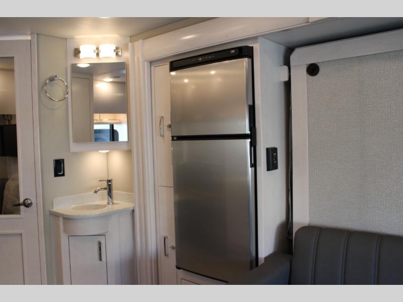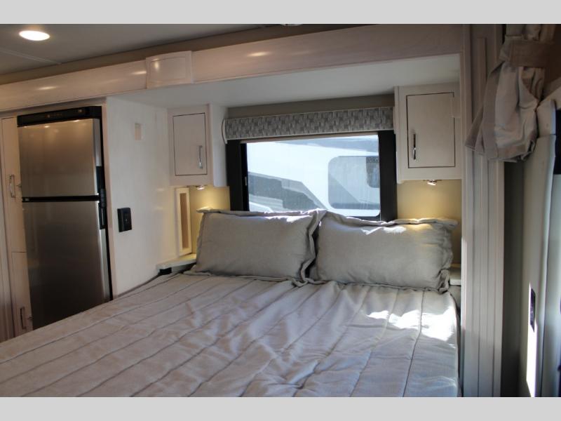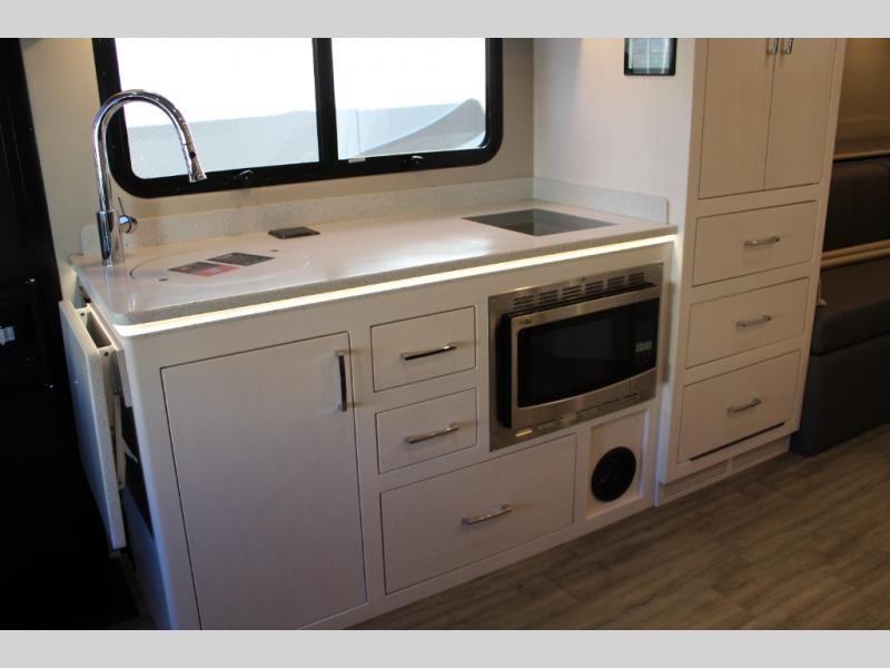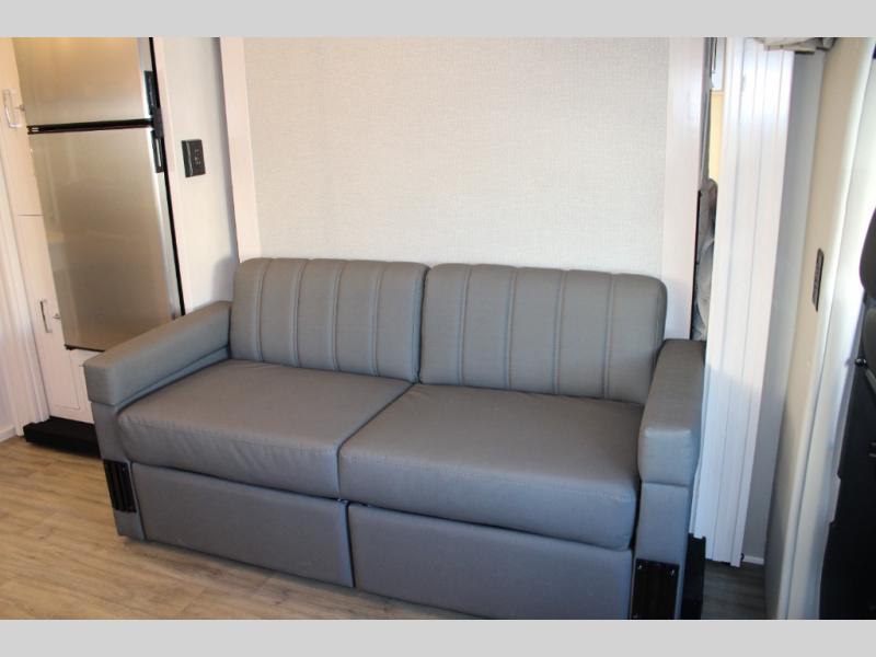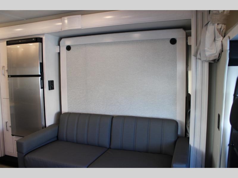 You will appreciate the versatility of this motorhome! Relax on the jiffy sofa during the day, then enjoy a restful night's sleep on the Murphy bed. A cozy L-shaped sofa is tucked in the rear corner and features storage beneath. The rear corner bath includes a sink outside the door for flexible use. The kitchen features an 8 cu. ft. refrigerator, microwave, and pantry, plus a closet to store miscellaneous items. And with a 46" x 80" bunk mattress above the cab, another person can join in on the fun!