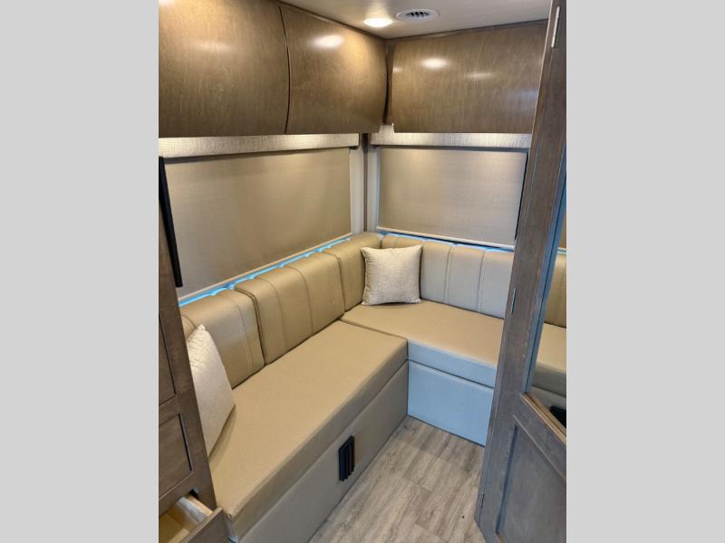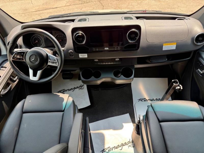 Luxury is in the details of each one of these Renegade Vienna Class C diesel motorhomes! They are built on a Mercedes-Benz Sprinter chassis, and include a four point hydraulic leveling system with app control, a 2000w true sine wave hybrid inverter, a 3.6KW LP generator with auto gen start, and Winegard Connect 2.0. You will appreciate the Truma™ Comfort Plus tankless water heater when showering, the accent lighting at the galley countertop for style, and the USB charging in the living area, bedroom and kitchen to keep your electronics ready. The Maple hardwood cabinetry completes the luxurious décor throughout the inside. Make your selection today!