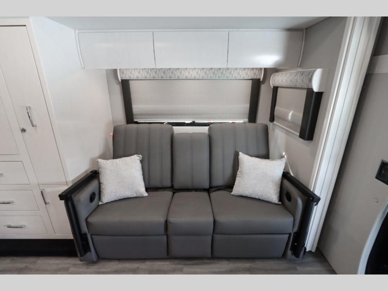 Luxury is in the details of each one of these Renegade Vienna Class C diesel motorhomes! They are built on a Mercedes-Benz Sprinter chassis, and include a four point hydraulic leveling system with app control, a 2000w true sine wave hybrid inverter, a 3.6KW LP generator with auto gen start, and Winegard Connect 2.0. You will appreciate the Truma™ Comfort Plus tankless water heater when showering, the accent lighting at the galley countertop for style, and the USB charging in the living area, bedroom and kitchen to keep your electronics ready. The Maple hardwood cabinetry completes the luxurious décor throughout the inside. Make your selection today!