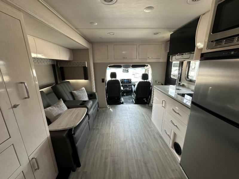 Luxury is in the details of each one of these Renegade Vienna Class C diesel motorhomes! They are built on a Mercedes-Benz Sprinter chassis, and include a four point hydraulic leveling system with app control, a 2000w true sine wave hybrid inverter, a 3.6KW LP generator with auto gen start, and Winegard Connect 2.0. You will appreciate the Truma™ Comfort Plus tankless water heater when showering, the accent lighting at the galley countertop for style, and the USB charging in the living area, bedroom and kitchen to keep your electronics ready. The Maple hardwood cabinetry completes the luxurious décor throughout the inside. Make your selection today!
