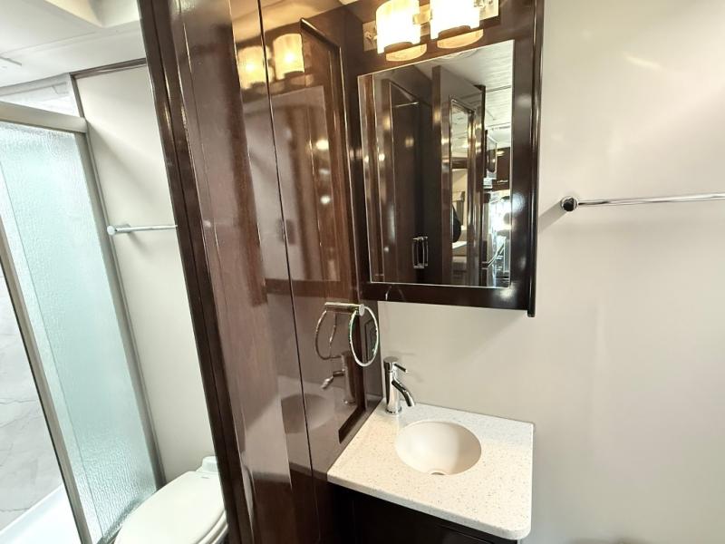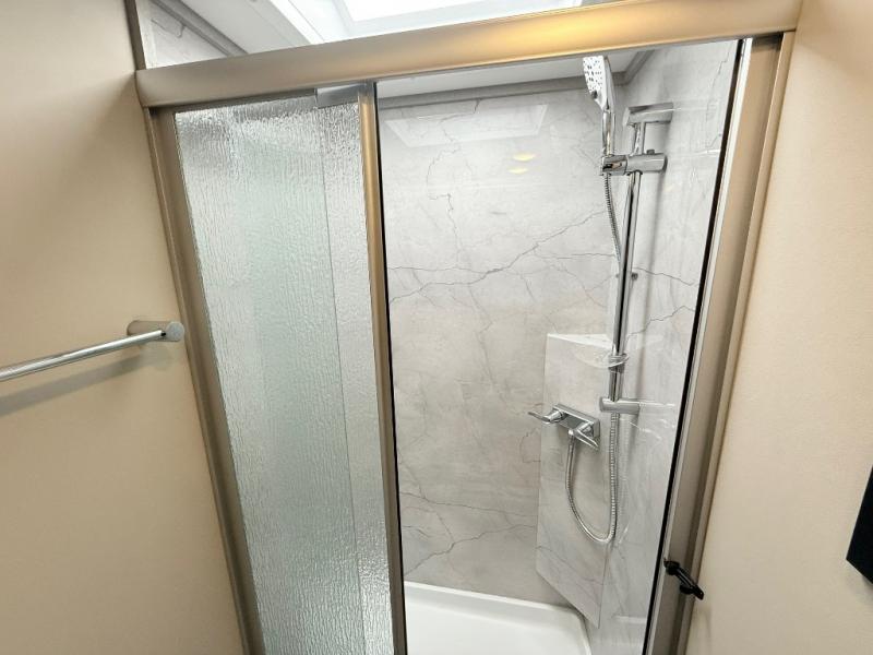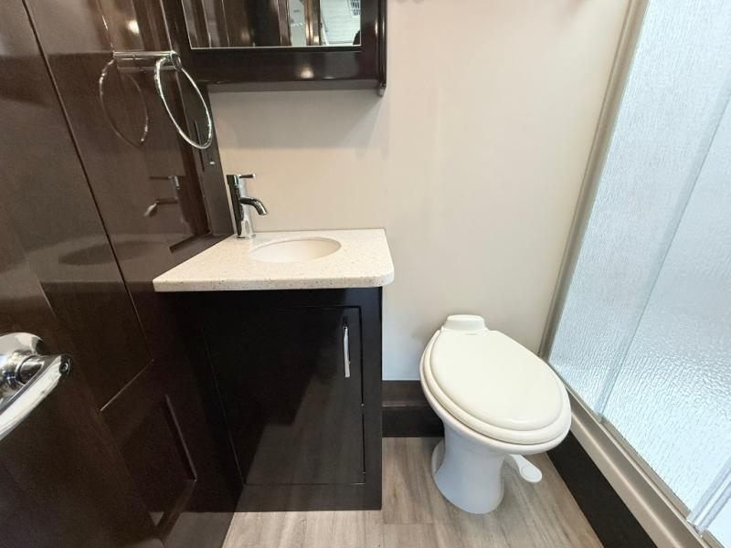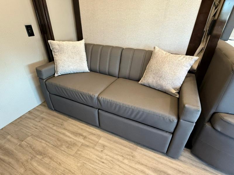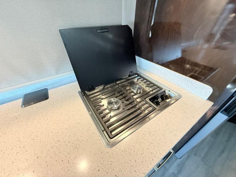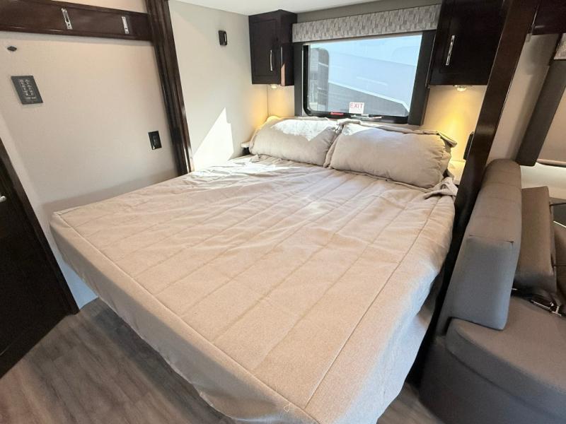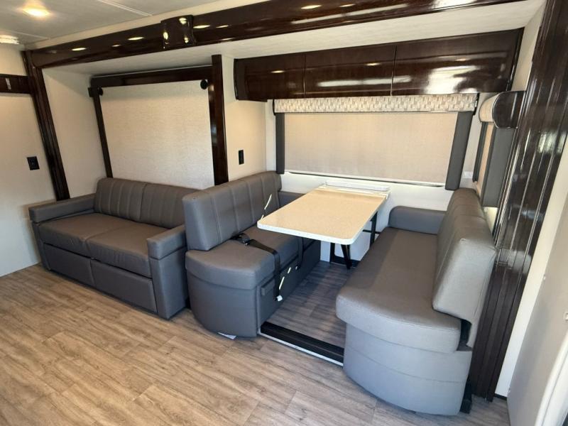 This is the perfect couples motorhome to explore the country! You will stay squeaky clean in the full rear bathroom with 24" x 36" shower, and a large closet to store your clothes, towels and other toiletries. Depending on what time you enter this coach will determine whether you see the sofa or the 65" x 72" Murphy bed. The kitchen has a two burner cooktop, a convection microwave, and an 8 cu. ft. refrigerator to prepare home cooked meals, and a booth dinette to enjoy them at. You even have the choice of adding a cab table option between the front seats to place your drinks, books and such.