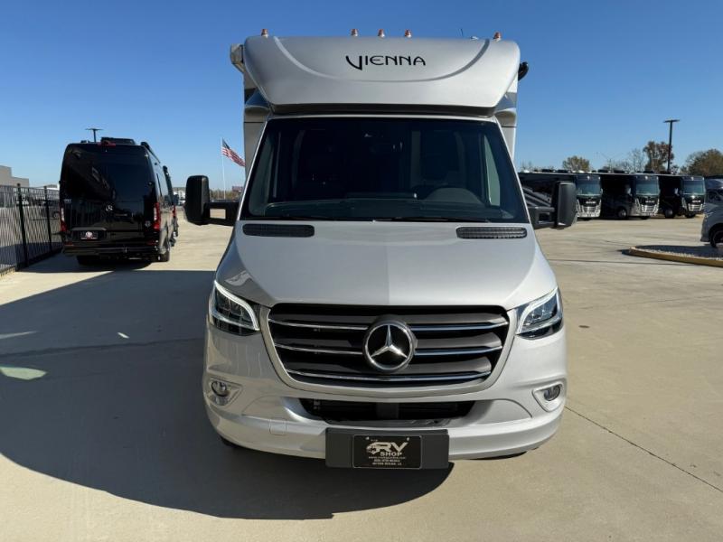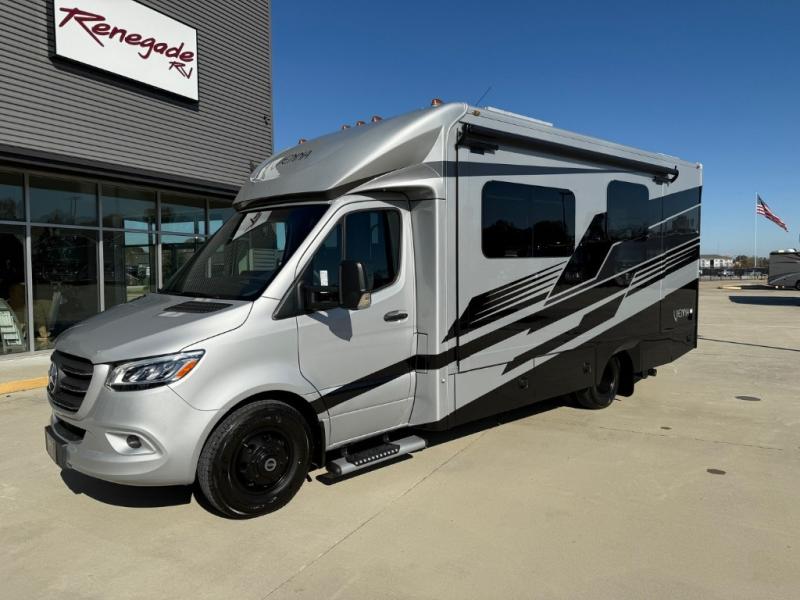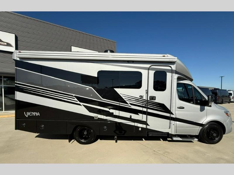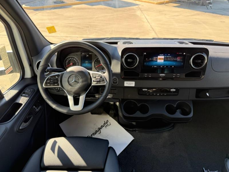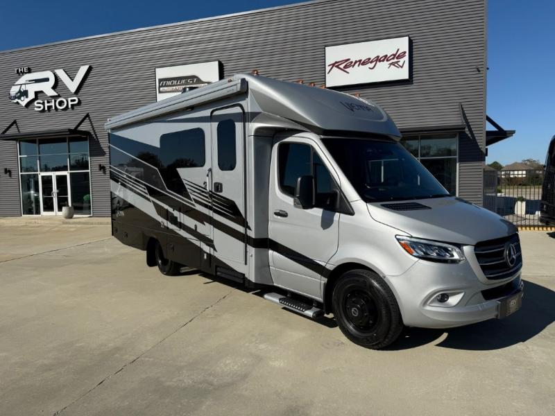Luxury is in the details of each one of these Renegade Vienna Class C diesel motorhomes! They are built on a Mercedes-Benz Sprinter chassis, and include a four point hydraulic leveling system with app control, a 2000w true sine wave hybrid inverter, a 3.6KW LP generator with auto gen start, and Winegard Connect 2.0. You will appreciate the Truma™ Comfort Plus tankless water heater when showering, the accent lighting at the galley countertop for style, and the USB charging in the living area, bedroom and kitchen to keep your electronics ready. The Maple hardwood cabinetry completes the luxurious décor throughout the inside. Make your selection today!