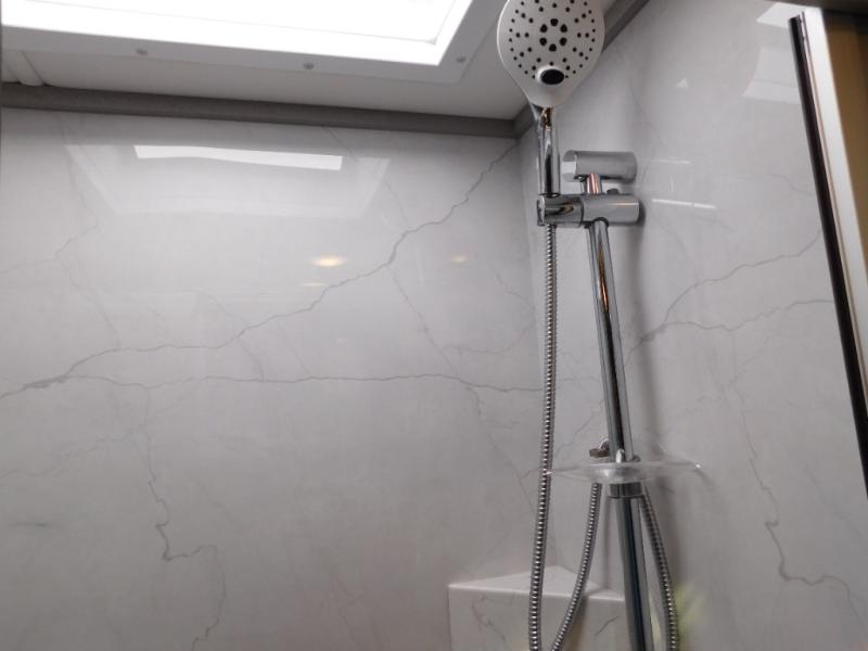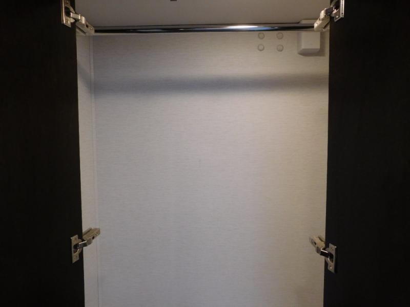 At the rear, the full bathroom offers residential-style comfort on the road. Enjoy a spacious shower and a large wardrobe closet that provides plenty of room for clothes, towels, and travel essentials—perfect for longer trips where comfort matters.