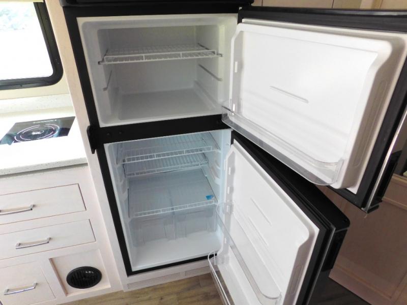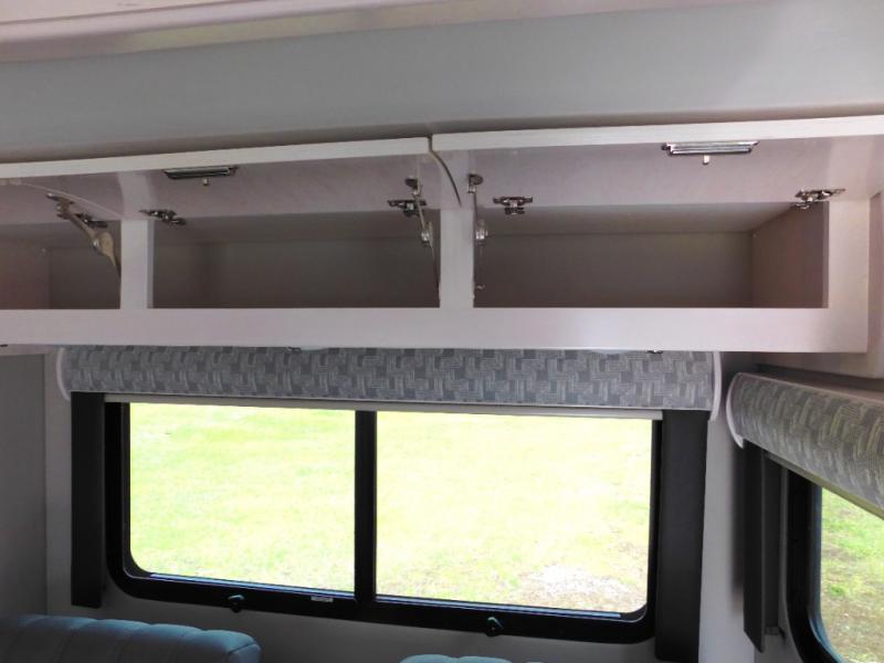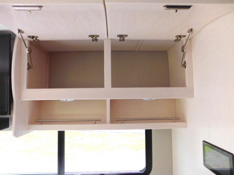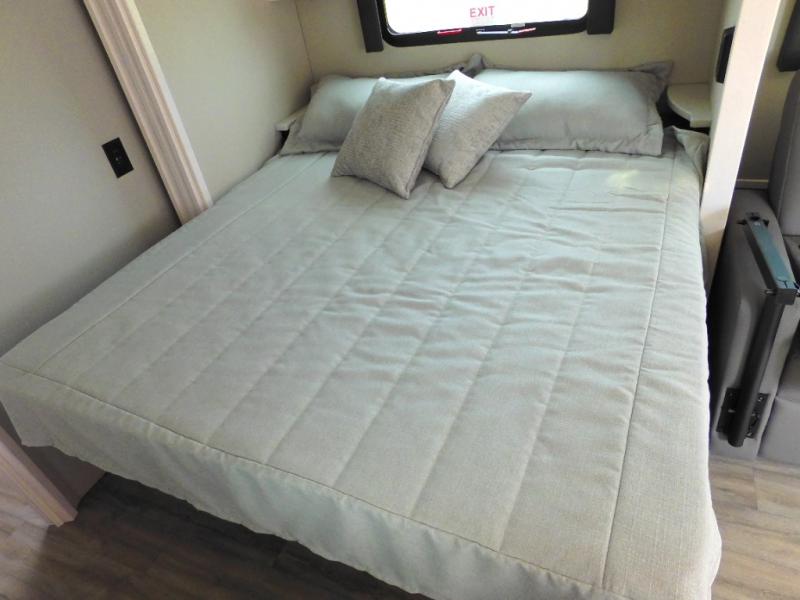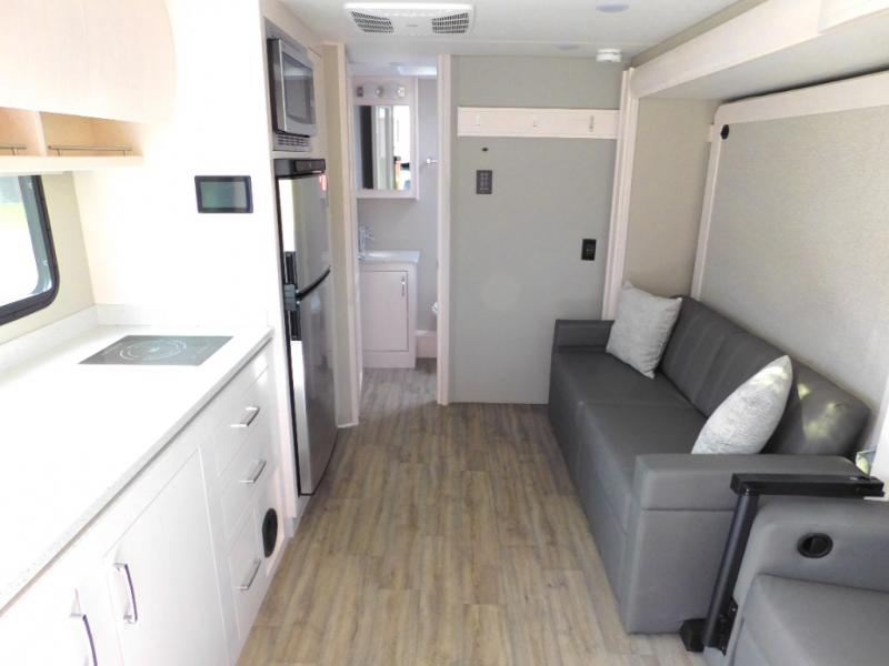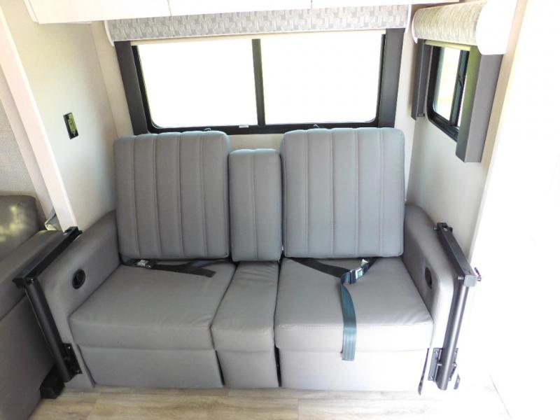 This is the perfect couples motorhome to explore the country! You will stay squeaky clean in the full rear bathroom with shower, and a large closet to store your clothes, towels and other toiletries. Depending on what time you enter this coach will determine whether you see the sofa or the 65" x 72" Murphy bed. The kitchen has a two burner cooktop, a convection microwave, and an 8 cu. ft. refrigerator to prepare home cooked meals, and a booth dinette to enjoy them at. You even have the choice of adding a cab table option between the front seats to place your drinks, books and such.