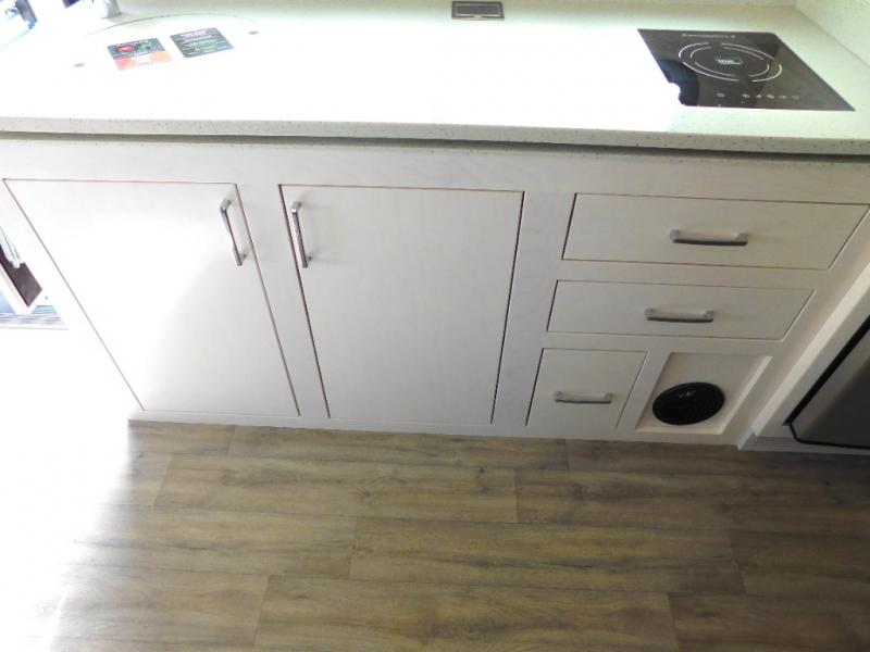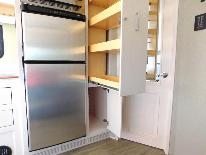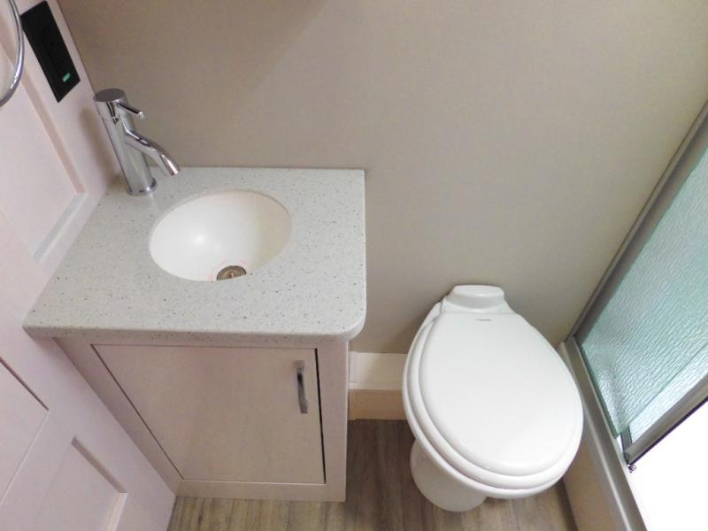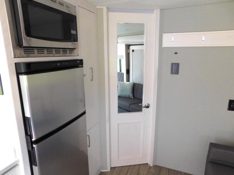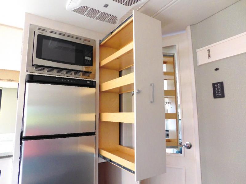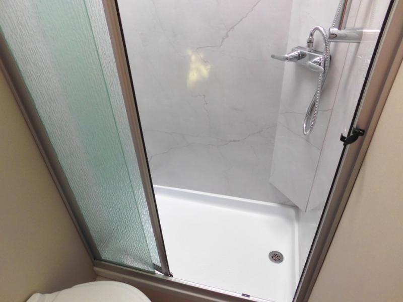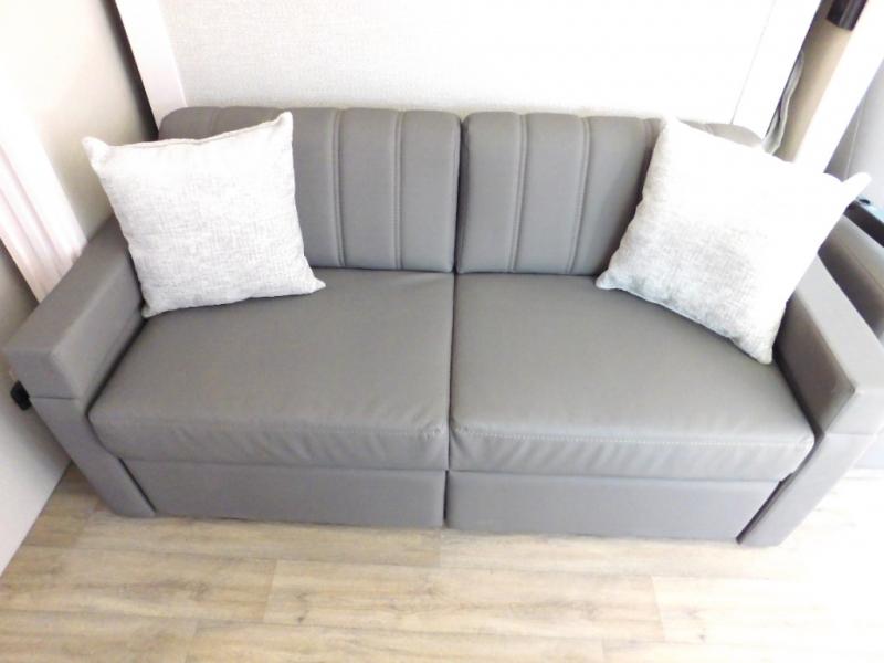 This is the perfect couples motorhome to explore the country! You will stay squeaky clean in the full rear bathroom with shower, and a large closet to store your clothes, towels and other toiletries. Depending on what time you enter this coach will determine whether you see the sofa or the 65" x 72" Murphy bed. The kitchen has a two burner cooktop, a convection microwave, and an 8 cu. ft. refrigerator to prepare home cooked meals, and a booth dinette to enjoy them at. You even have the choice of adding a cab table option between the front seats to place your drinks, books and such.