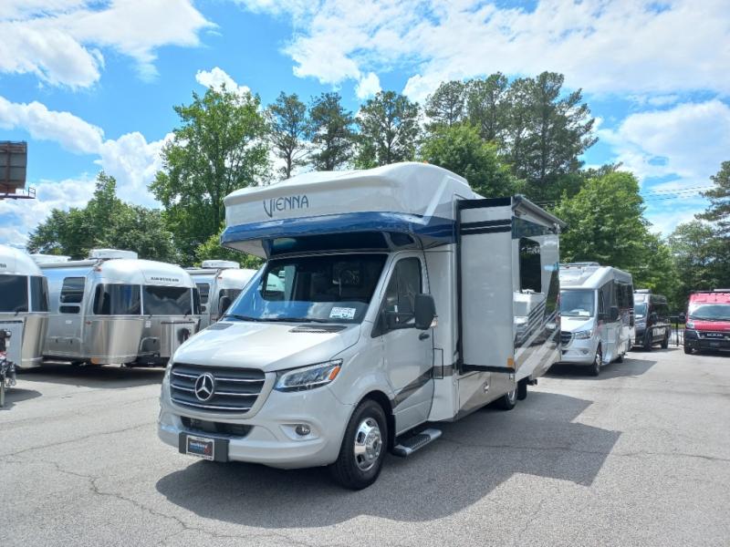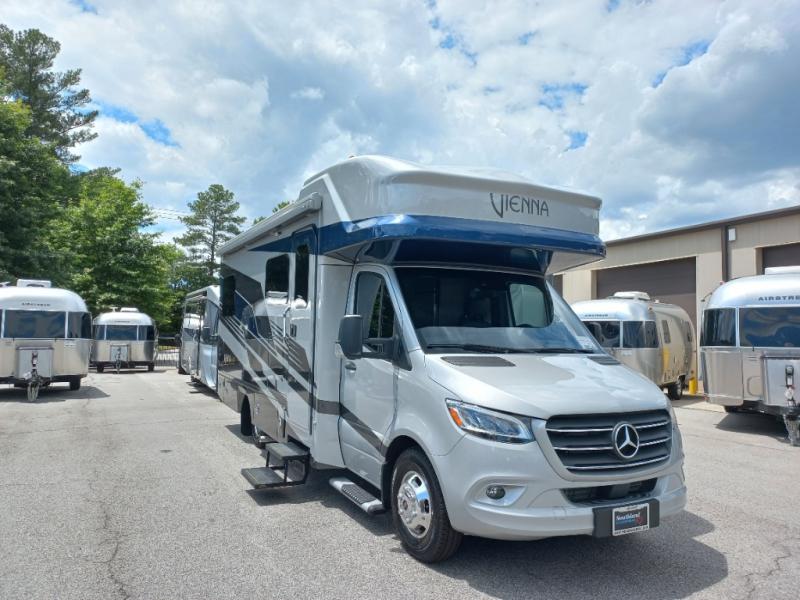 Luxury is in the details of each one of these Renegade Vienna Class C diesel motorhomes! They are built on a Mercedes-Benz Sprinter chassis, and include a four point hydraulic leveling system with app control, a 2000w true sine wave hybrid inverter, a 3.6KW LP generator with auto gen start, and Winegard Connect 2.0. You will appreciate the Truma™ Comfort Plus tankless water heater when showering, the accent lighting at the galley countertop for style, and the USB charging in the living area, bedroom and kitchen to keep your electronics ready. The Maple hardwood cabinetry completes the luxurious décor throughout the inside. Make your selection today!