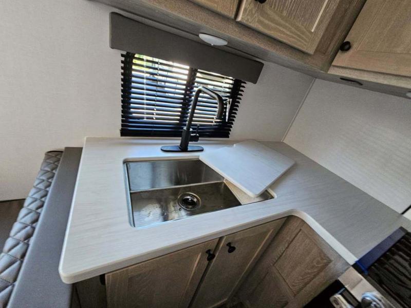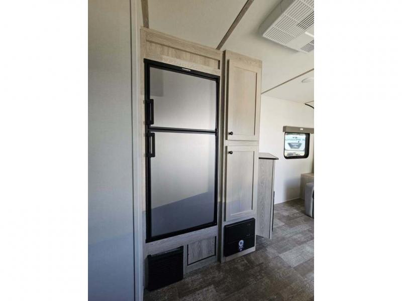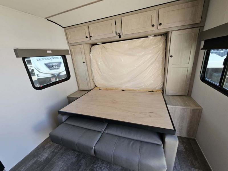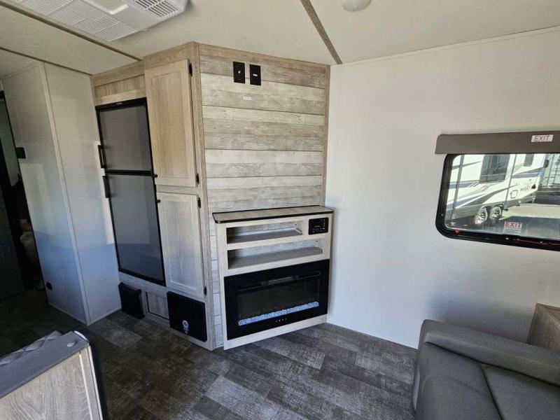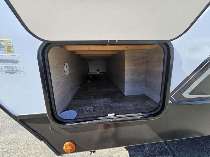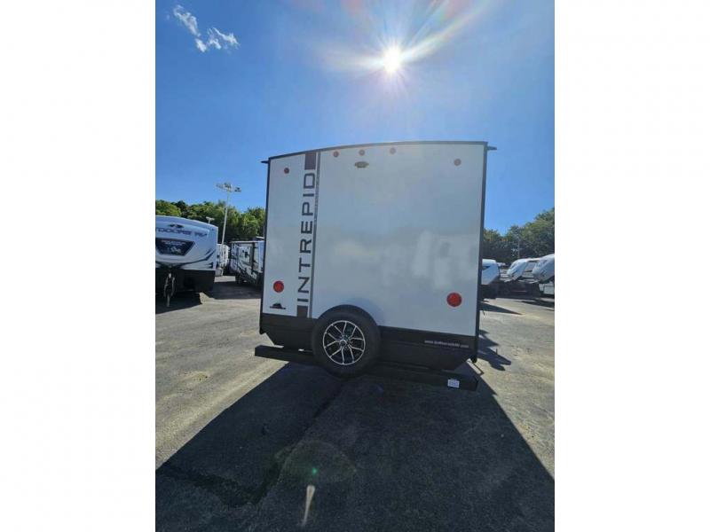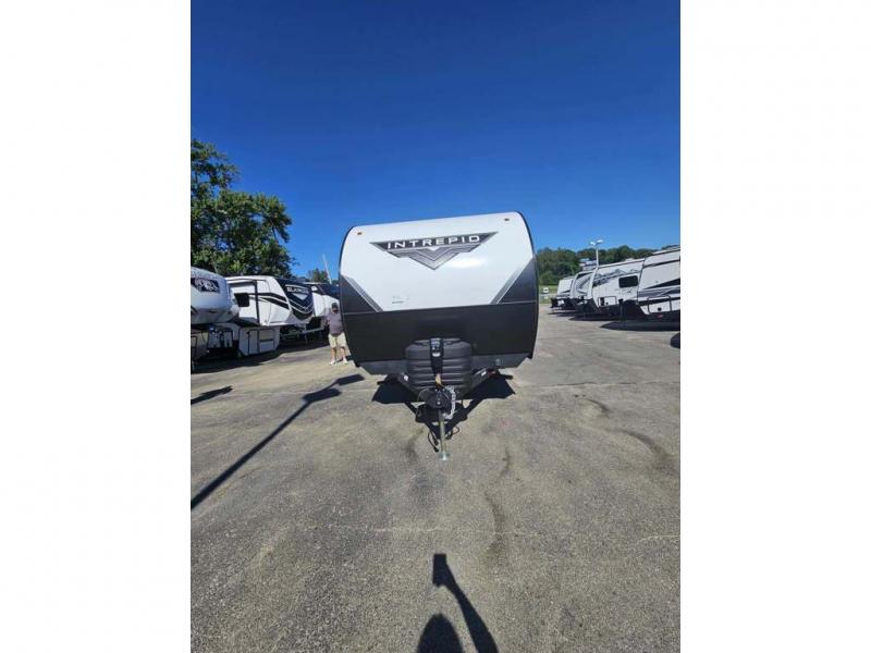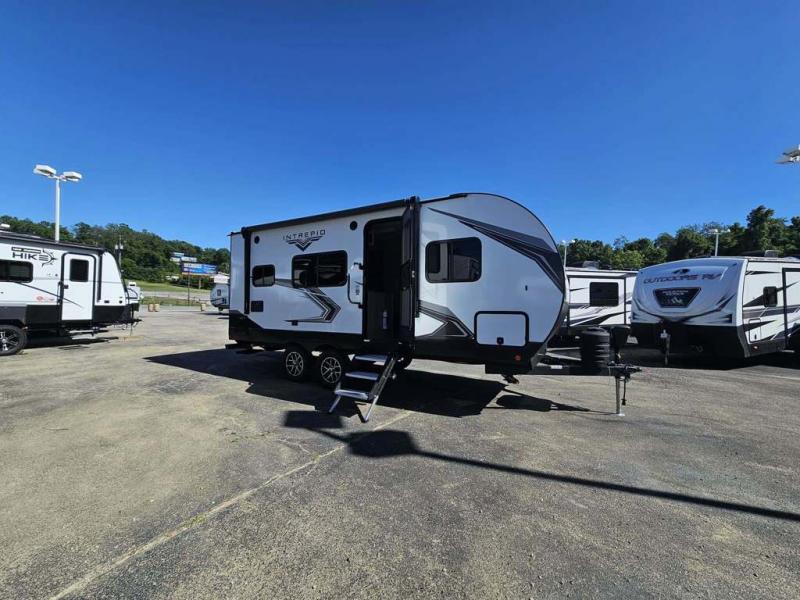 With any Intrepid travel trailer by Riverside RV, you will appreciate easy towing thanks to their lightweight construction! Each model features a fully integrated A-frame, 3/8" decking for a full walk-on roof, and Azdel vacuum bonded laminated walls for added durability. There are new upgraded aluminum wheels, along with upgraded Intrepid graphics package and enlarged cargo doors so nothing gets left behind. Additional exterior features include diamond plate rock guard, front and rear stabilizer jacks, an outside shower, and a friction hinge entry door. The interior of each Intrepid includes upgraded black faucets, roller blinds, standard GE appliances, hardwood Gran Oak cabinet doors, and many more comforts. There are also USB ports to keep your electronics charged, an FM/Bluetooth stereo to listen to your favorite tunes, and an HD TV antenna if you choose to bring along a television!